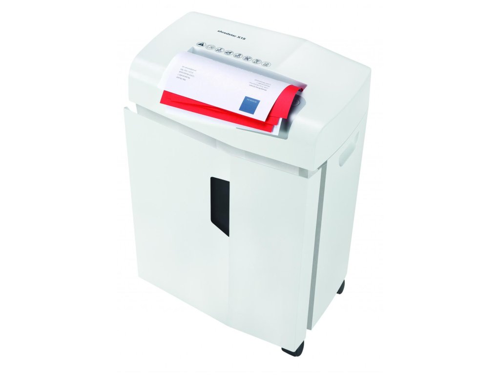 Top model na kolieskach radu HSM shredstar . Tichý a výkonný, skartuje CD, DVD, plastové karty a spinky. Rozdrvený materiál sa samostatne separuje. Plný zásobník sa zobrazí na displeji a stroj sa automaticky vypne. Automatický spätný chod eliminuje zasekávanie papiera a zaisťuje plynulú prevádzku. LED indikátor zobrazuje prevádzkový stav zariadenia: napájanie, preťaženie, prehriatie, plný kôš, otvorené dvierka. Stav naplnenia odpadovej nádoby je vždy viditeľný cez kontrolné okienko. Veľkosť rezu: 4 x 37 mm, kapacita 15 listov. Šírka vstupu 230 mm, objem odpadového koša 26 l. Rozmery 390 x 300 x 595 mm (šxhxv), hmotnosť 13 kg.