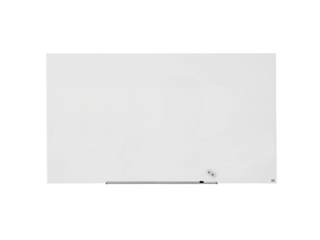 Na širokouhlé sklenené tabule Nobo sa vojdú všetky vaše nápady! Širokouhlý formát a minimalistický rámček maximalizujú využiteľnú plochu na písanie. Systém InvisaMount™, pre jednoduchú inštaláciu na stenu, schová všetky montážne prvky za doskou tabule. Vďaka tomu tabule majú moderný, štýlový a ničím nerušený dizajn. Súčasťou tabule je taktiež odnímateľný hliníkový odkladač na popisovače. Magnetický sklenený povrch zaručuje najlepšiu možnú mazateľnosť a je vhodný na každodenné používanie. Veľkosť uhlopriečky: 85” (215 cm).