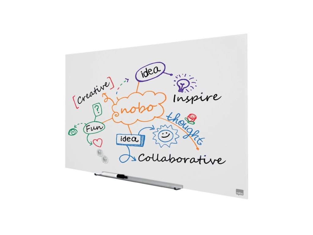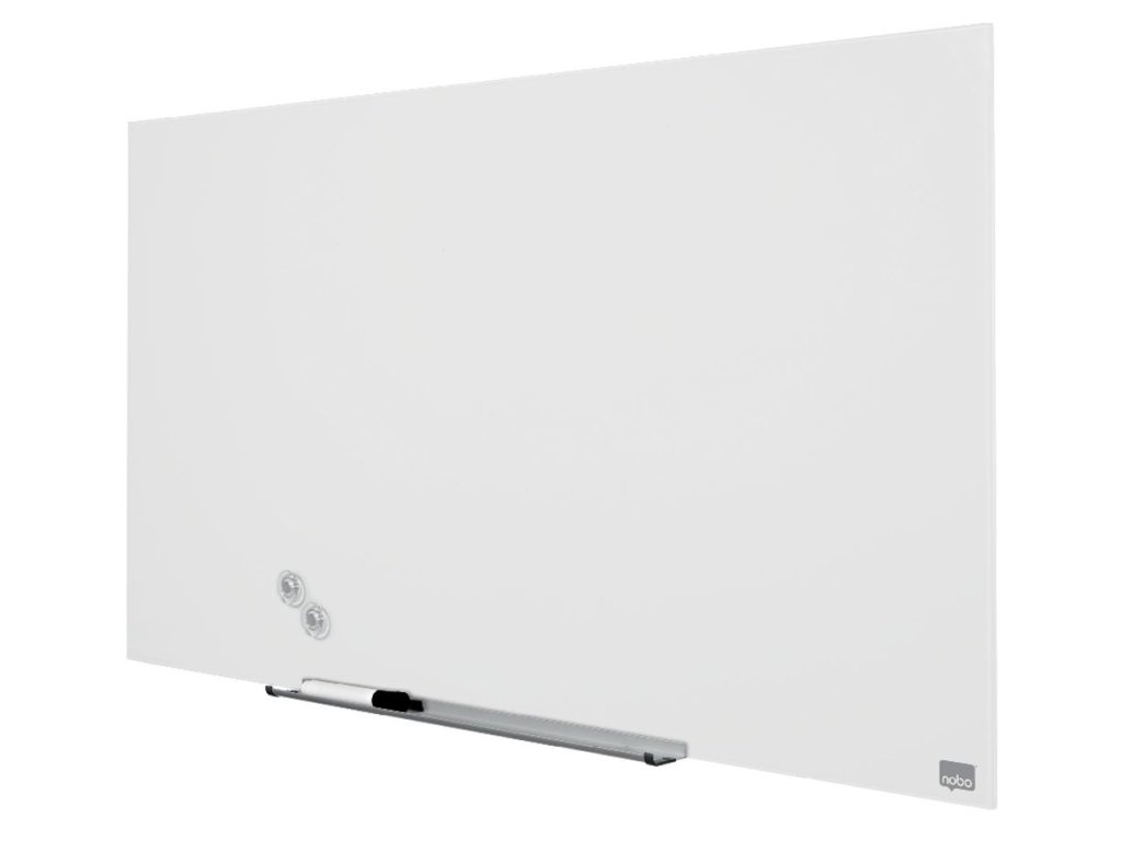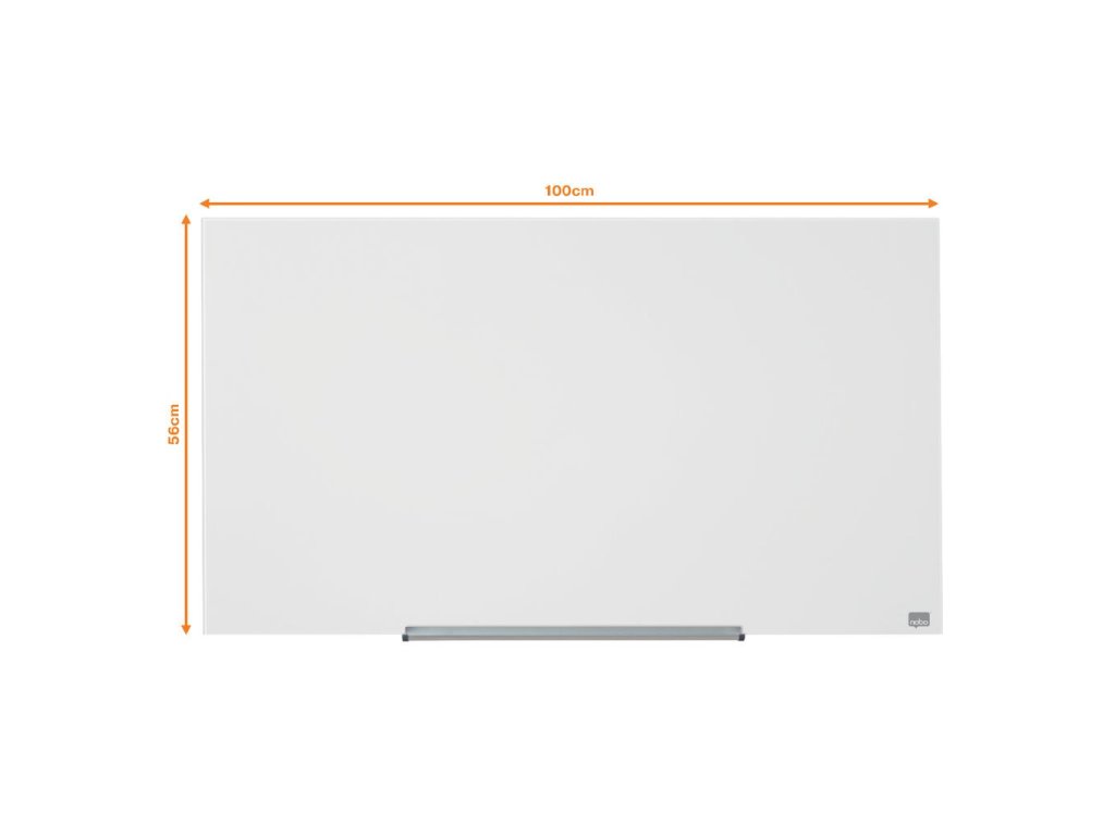 Na širokouhlé sklenené tabule Nobo sa vojdú všetky vaše nápady! Širokouhlý formát a minimalistický rámček maximalizujú využiteľnú plochu na písanie. Systém InvisaMount™, pre jednoduchú inštaláciu na stenu, schová všetky montážne prvky za doskou tabule. Vďaka tomu tabule majú moderný, štýlový a ničím nerušený dizajn. Súčasťou tabule je taktiež odnímateľný hliníkový odkladač na popisovače. Magnetický sklenený povrch zaručuje najlepšiu možnú mazateľnosť a je vhodný na každodenné používanie. Veľkosť uhlopriečky: 45” (114 cm).