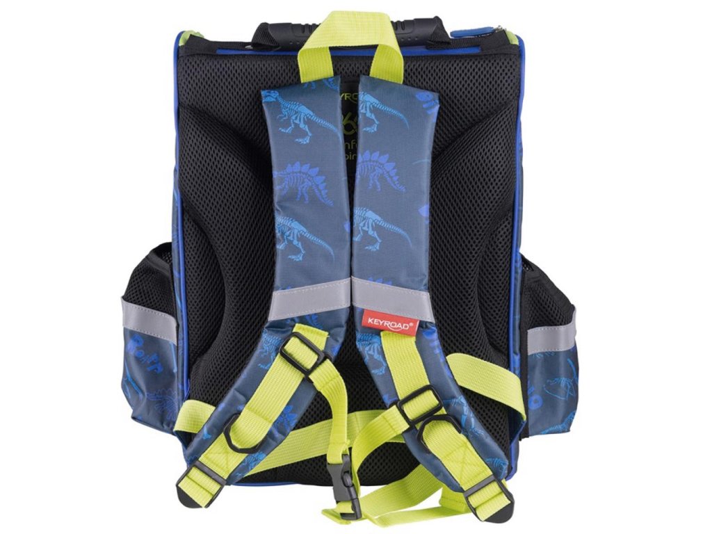 Extrémne ľahká školská taška prispôsobená veku a hmotnosti dieťaťa, čo znamená, že dodatočne nezaťažuje chrbticu a kĺby, vhodné pre žiakov 1. a 2. ročníka ZŠ. Profilovaná a vystužená konštrukcia pomáha udržiavať správne držanie tela. Vstavané ventilačné kanáliky zaisťujú dostatočné prúdenie vzduchu, takže batoh neprehrieva chrbát dieťaťa, široké a mäkké popruhy s nastaviteľnou dĺžkou zvyšujú komfort, nezaťažujú ramená a umožňujú prispôsobenie školskej tašky výške dieťaťa. S hrudným popruhom spájajúcim ramenné popruhy, ktorý zabraňuje skĺznutiu z pliec a odľahčuje chrbát, dodatočný stabilizačný panel chrániaci bedrovú časť. Pogumovaná rukoväť a uzamykacie gombíky umožňujú ľahké a pohodlné držanie, vybavená funkčnou hlavnou priehradkou s dodatočnou priehradkou, ktorá uľahčuje organizáciu a rýchly prístup k potrebným veciam. Má ďalšie vonkajšie vrecko na zips a dve bočné, elastické vonkajšie vrecká na nápoje alebo iné drobnosti. Rozmery: 38 x 28 x 18 cm.