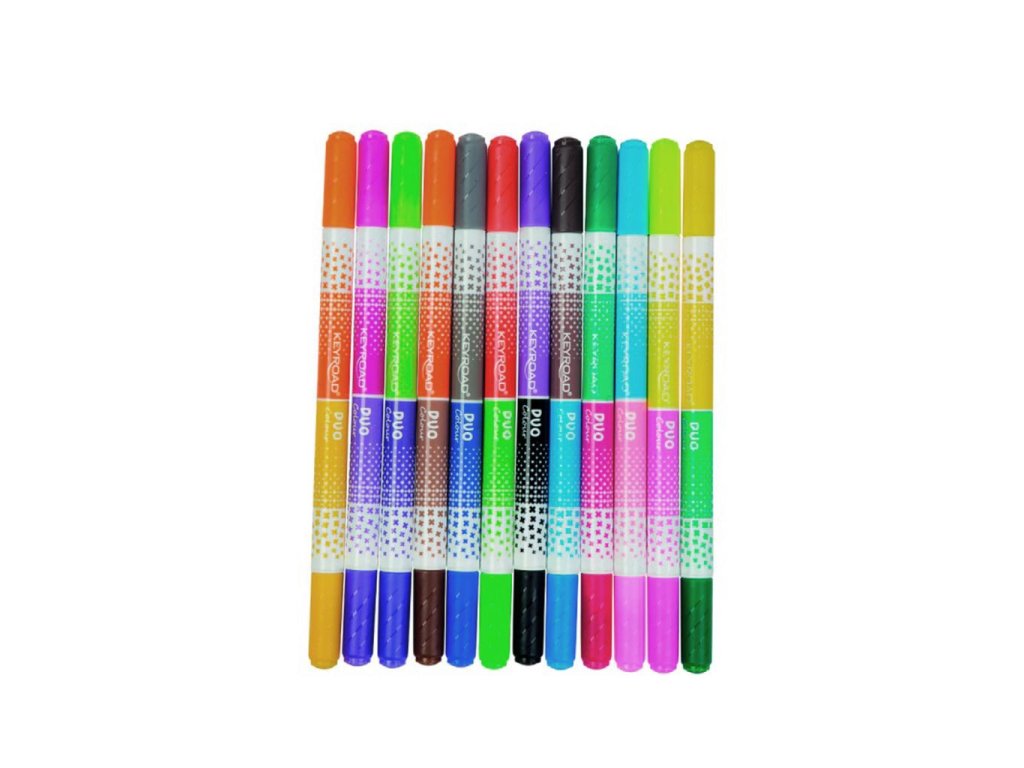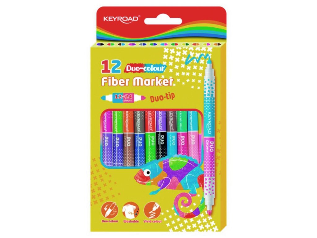 Školské fixky, obojstranné, intenzívne, živé farby. Sú ideálne pre študentov, umývateľné. Sada obsahuje 24 rôznych farieb (12×2), čo umožňuje vytvárať farebné kresby. V sade 12 ks. Farba: mix farieb.