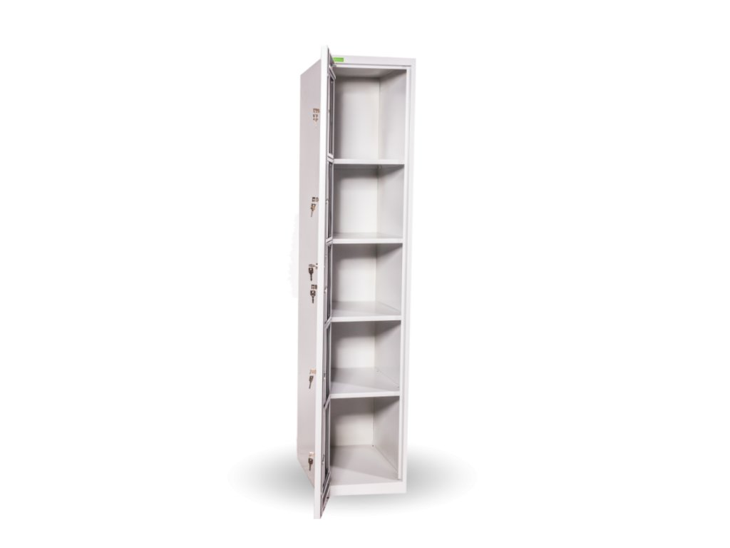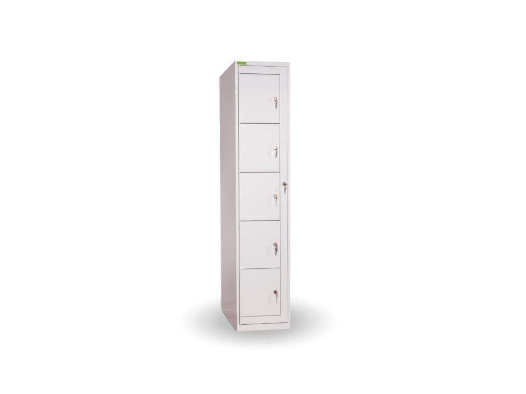 Skriňa na výdaj pracovného oblečenia s 5 priehradkami, uzamykateľná, v.182 x š.38 x h.45cm, RAL7035 sivá