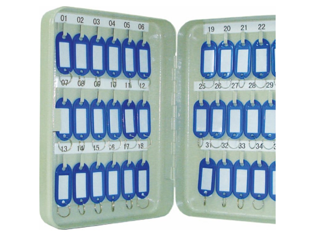 Uzamykateľná skrinka na 36 kľúčov, vyrobená z pevnej ocele. Súčasťou balenia sú 2 kľúče. Farba sivá. Rozmery 180 × 250 × 60 mm.