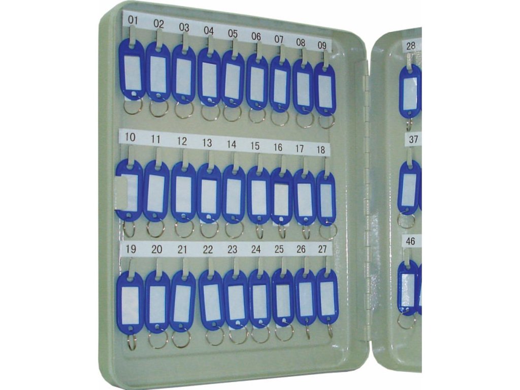 Uzamykateľná skrinka na 54 kľúčov, vyrobená z pevnej ocele. Súčasťou balenia sú 2 kľúče. Farba sivá. Rozmery 240 × 300 × 60 mm.