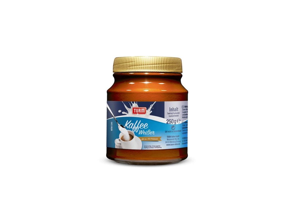 Glukózový sirup, rastlinný olej(kokosový), stabilizátory: E340, E452, MLIEČNA BIELKOVINA, emulgátor: E471, protihrudkujúca látka: E551, farbivo: E160a.