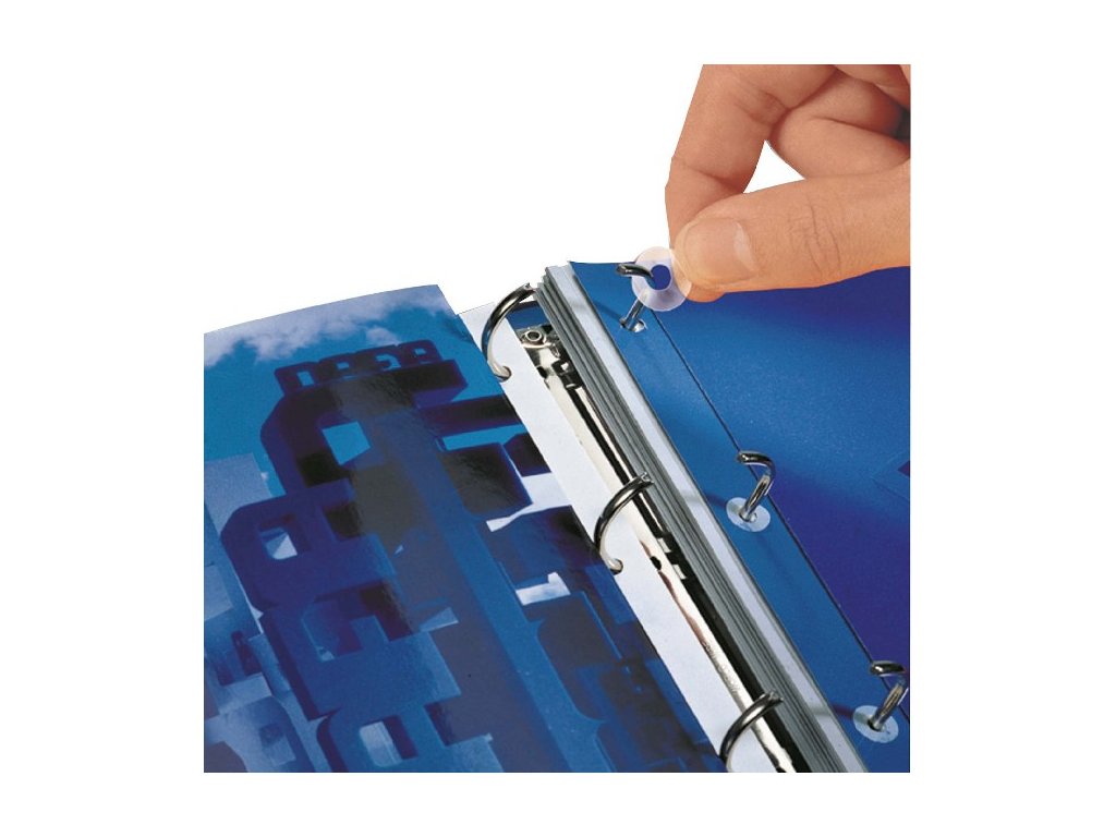Samolepiace krúžky na opravu a ochranu často používaných dokumentov v krúžkových viazačoch. Materiál biele PVC prekryje prípadné trhliny po obvode dierovania.