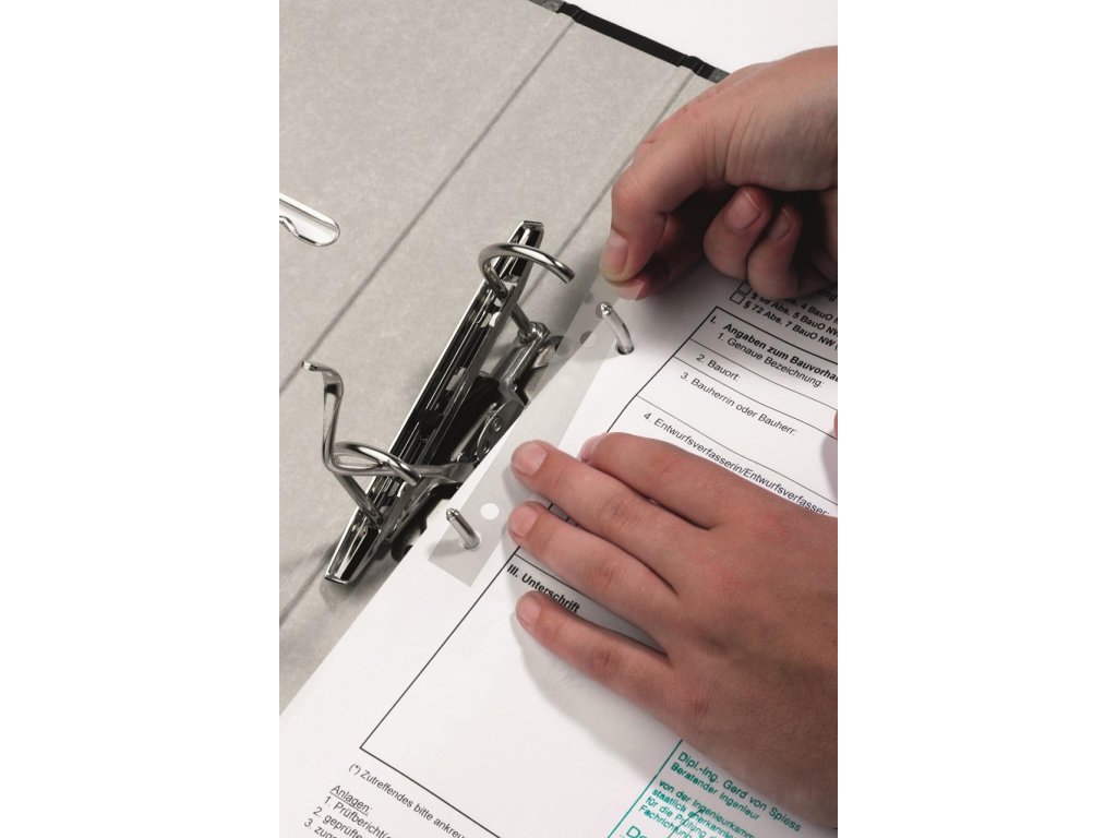 Samolepiace spevňovacie pásiky na ochranu často používaných dokumentov v krúžkových viazačoch.Balenie 50 ks.