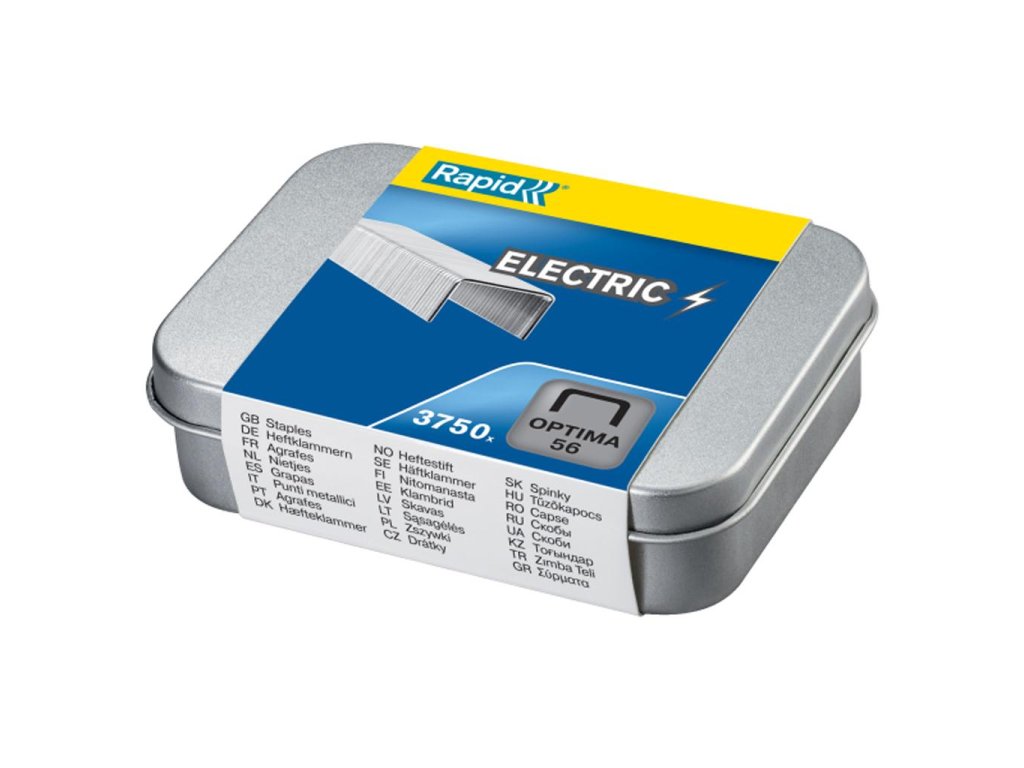 Ultraostré drôtiky Optima 56 sú vyrobené z kvalitnej ocele a ľahko prerazia až 20 hárkov. V spojení s elektrickými zošívačkami Rapid Optima Grip a Optima 20 zaručujú presné zošívanie bez zasekávania. K dispozícii v baleniach po 3750 ks. Dodávajú sa v šikovnej hliníkovej plechovke s bezpečne uzatvárateľným viečkom. Špeciálne drôtiky pre elektrické zošívačky Rapid Optima Grip a Optima 20.
