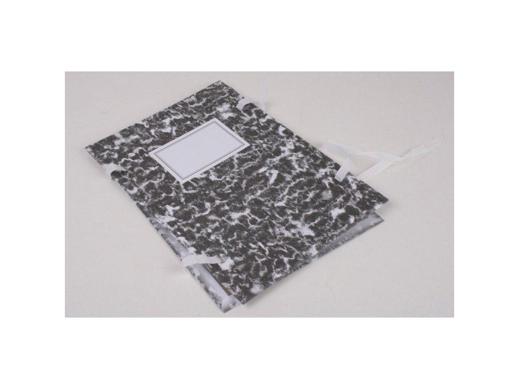 Jednostranne poťahované kartónové dosky bez chrbta zo strojnej lepenky, spojené šnúrkami. Formát A4. Prevedenie mramor. Väčšie balenie 25 ks.