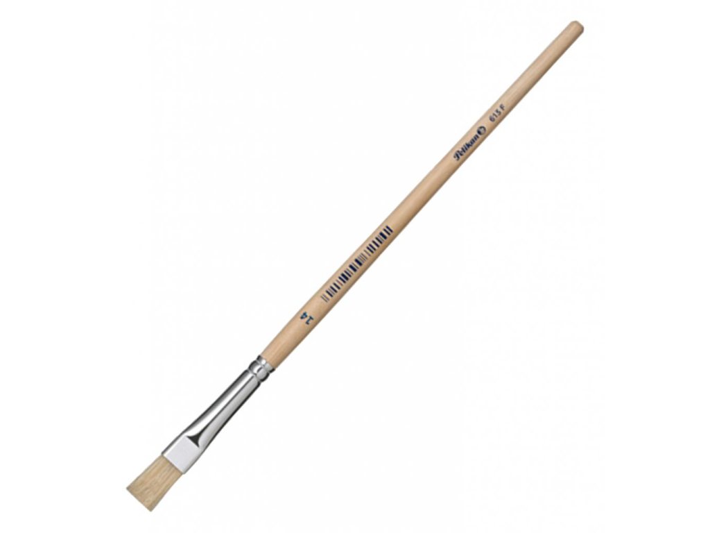 Plochý štetec s krátkymi štetinami. Drevená rukoväť lakovaná bezfarebným lakom a hliníkovým úchytom, s hrúbkou stopy 14 mm. Určený k maľovaniu a kresleniu na papier.