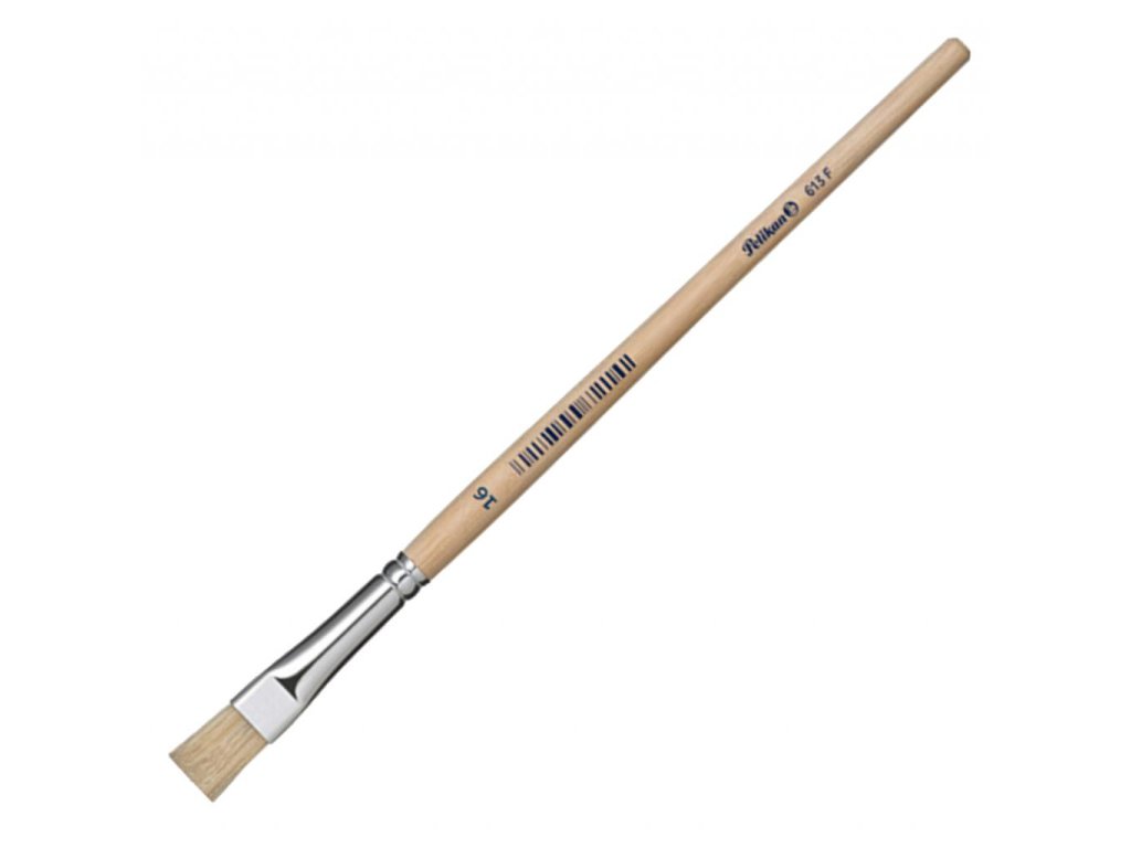 Plochý štetec s krátkymi štetinami. Drevená rukoväť lakovaná bezfarebným lakom a hliníkovým úchytom, s hrúbkou stopy 16 mm. Určený k maľovaniu a kresleniu na papier.