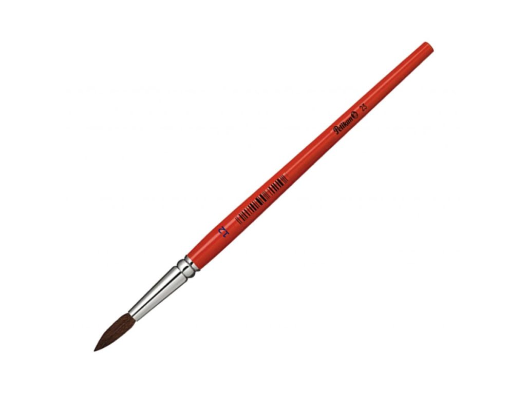 Guľatý vlasový štetec Pelikan 23, štandarndá kvalita, s hliníkovým úchytom, oranžová lakovaná rukoväť, hrúbka stopy uvedená ako číslo.