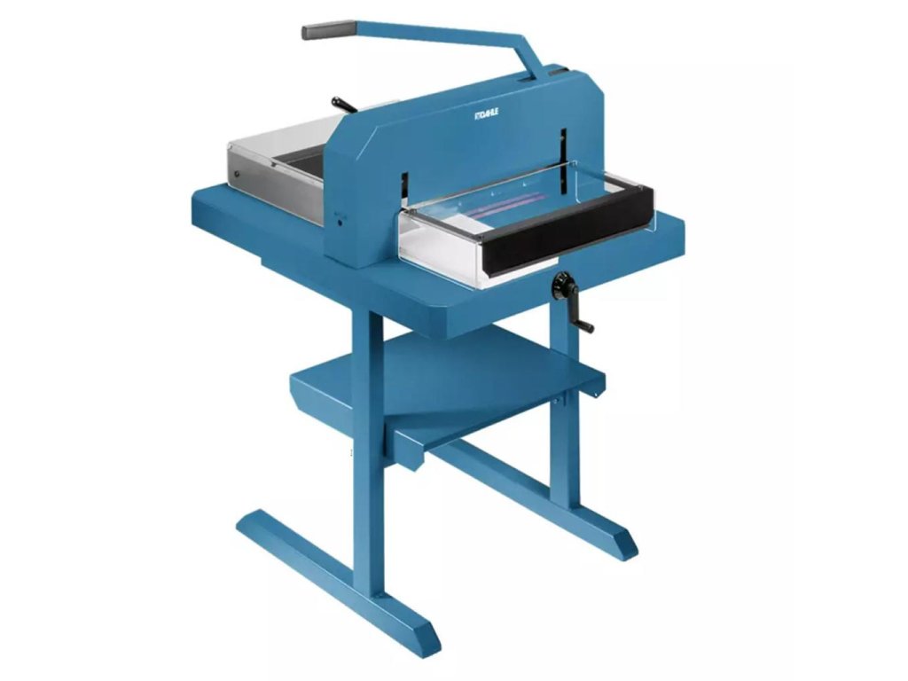 Praktický stojan s odkladacou poličkou s optimálnou pracovnou výškou 740 mm k veľkokapacitnej rezačke DAHLE 848.