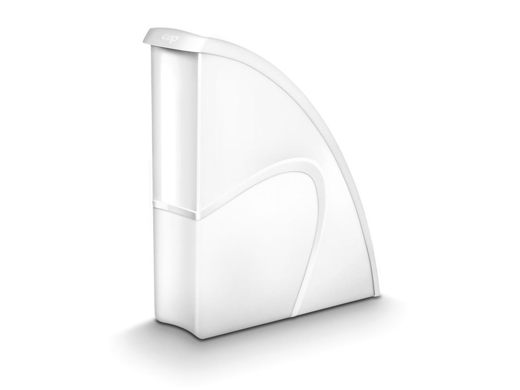 Stojan na časopisy s možnosťou vertikálneho alebo horizontálneho postavenia má elegantné línie, zvýraznené materiálom s kontrastným matným povrchom na hladkom pozadí. Vhodný na dokumenty do veľkosti 24 × 32 cm. Kapacita 700 listov (80 g / m²), rozmery 270 × 85 × 310 mm. Materiál 100% recyklovateľný vysokokvalitný plast. Väčšie balenie 10 ks. Farba biela.