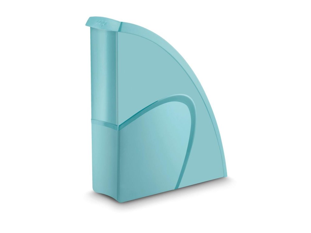 Stojan na časopisy s možnosťou vertikálneho alebo horizontálneho postavenia má elegantné línie, zvýraznené materiálom s kontrastným matným povrchom na hladkom pozadí. Vhodný na dokumenty do veľkosti 24 × 32 cm. Kapacita 700 listov (80 g / m²), rozmery 270 × 85 × 310 mm. Materiál 100% recyklovateľný vysokokvalitný plast. Väčšie balenie 10 ks. Farba mentolová.