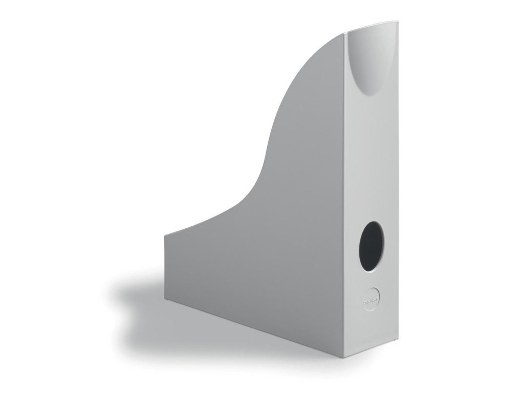 Praktický stojan na časopisy a katalógy z recyklovaného plastu v kvalite Blue Angel, pre formáty A4. S otvorom na prst pre ľahké vyberanie z police. Rozmery: 73 x 306 x 241 mm (Š x V x H). Farba sivá.