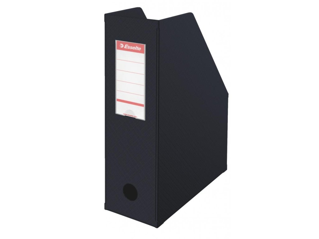 Skladací ohybný stojan z PVC na materiály do formátu A4 s otvorom na chrbte a vymeniteľným popisovateľným papierovým štítkom. Rozmery (v×h) 32×24 cm, šírka chrbta 10 cm. Väčšie balenie 10 ks.