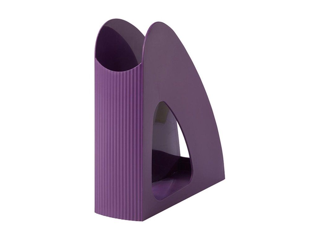 Viacúčelový plastový stojan moderného dizajnu v nových a trendových farbách. Veľmi atraktívny a extrémne odolný voči prasknutiu, vyrobený z PP vysokej kvality. Vhodný na ukladanie časopisov, záznamov, katalógov a pod. Vonkajšie rozmery 25,6 × 23, 9 cm, šírka chrbta 7,6 cm. Väčšie balenie 6 ks. Farba fialová.