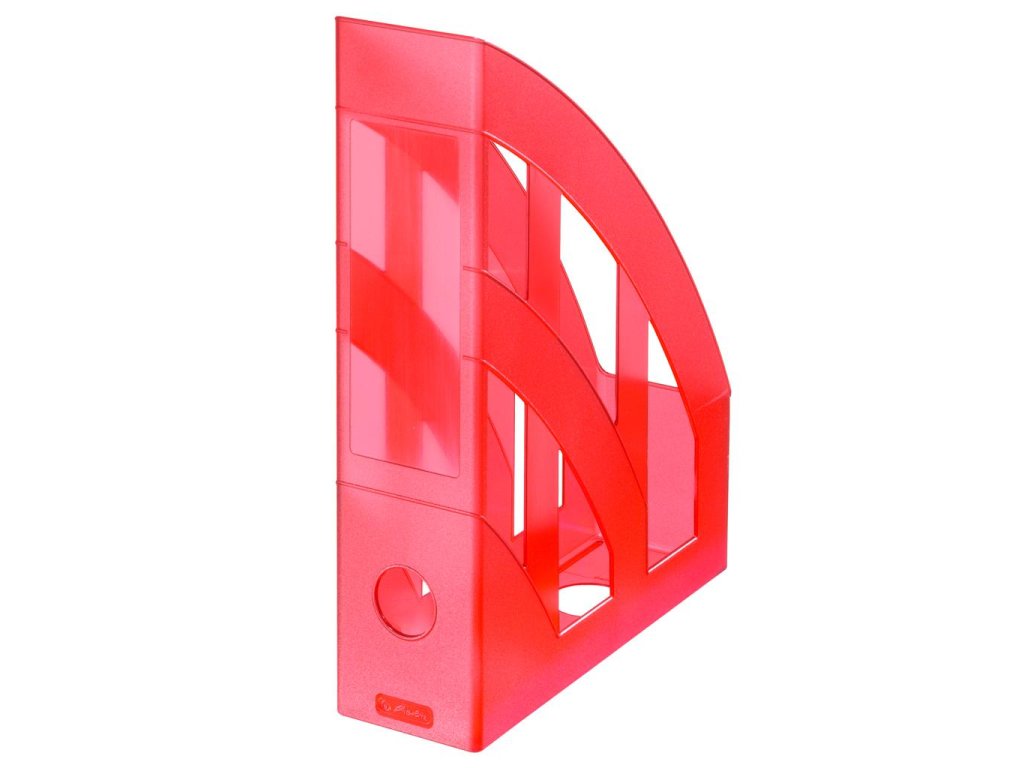 Plastový stojan na časopisy vhodný na ukladanie časopisov, záznamov a katalógov. Etiketa na chrbte. U priehľadných je materiál Polystyrol, plast odolný voči nárazom. Pre formát DIN A4 až C4. Väčšie balenie 4 ks. Farba priehľadná červená.