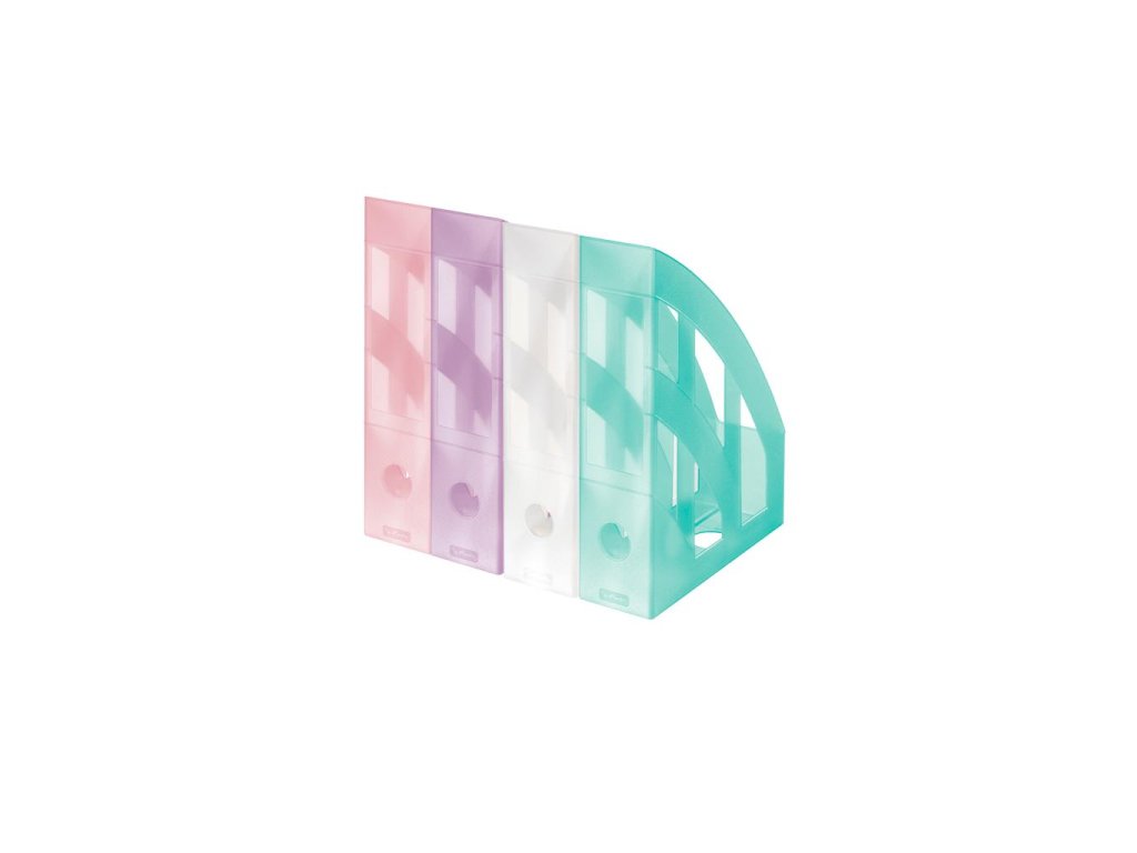 Plastový stojan na časopisy vhodný na ukladanie časopisov, záznamov a katalógov. Miesto na etiketu na chrbte. U priehľadných je materiál Polystyrol, plast odolný voči nárazom. Pre formát DIN A4 až C4. Väčšie balenie 4 ks. Farba priehľadná fialová.
