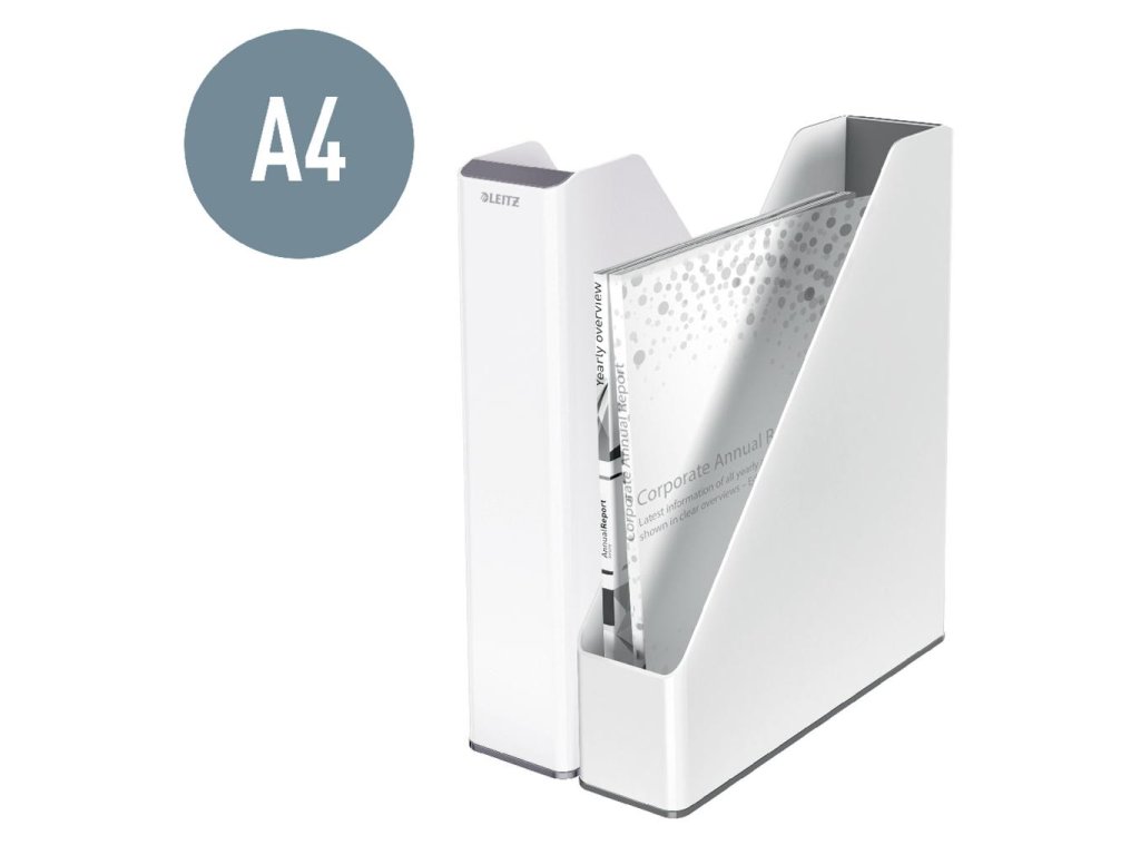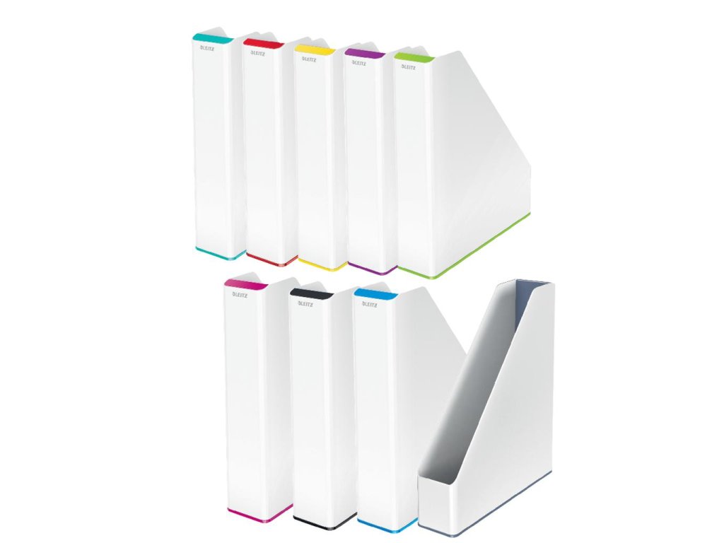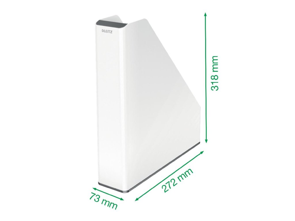 Stojan na bezpečné ukladanie časopisov a katalógov v dvojfarebnom prevedení v metalických farbách WOW s lesklým povrchom. Farba biela/červená.