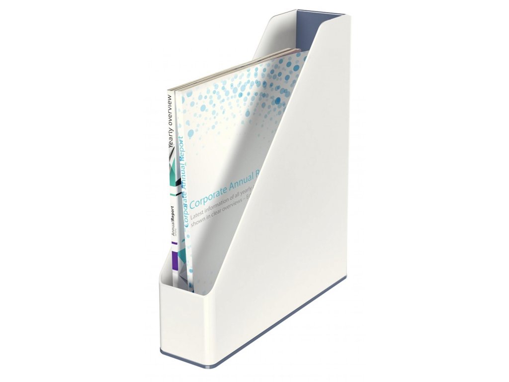 Stojan na bezpečné ukladanie časopisov a katalógov v dvojfarebnom prevedení v metalických farbách WOW s lesklým povrchom. Farba sivá.
