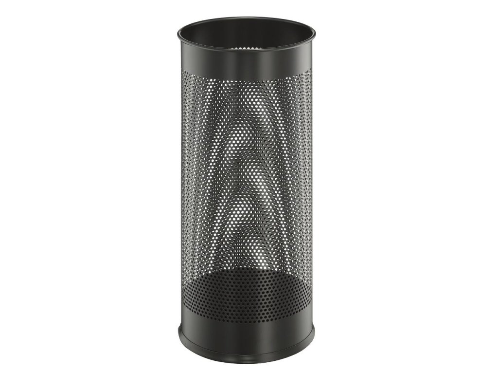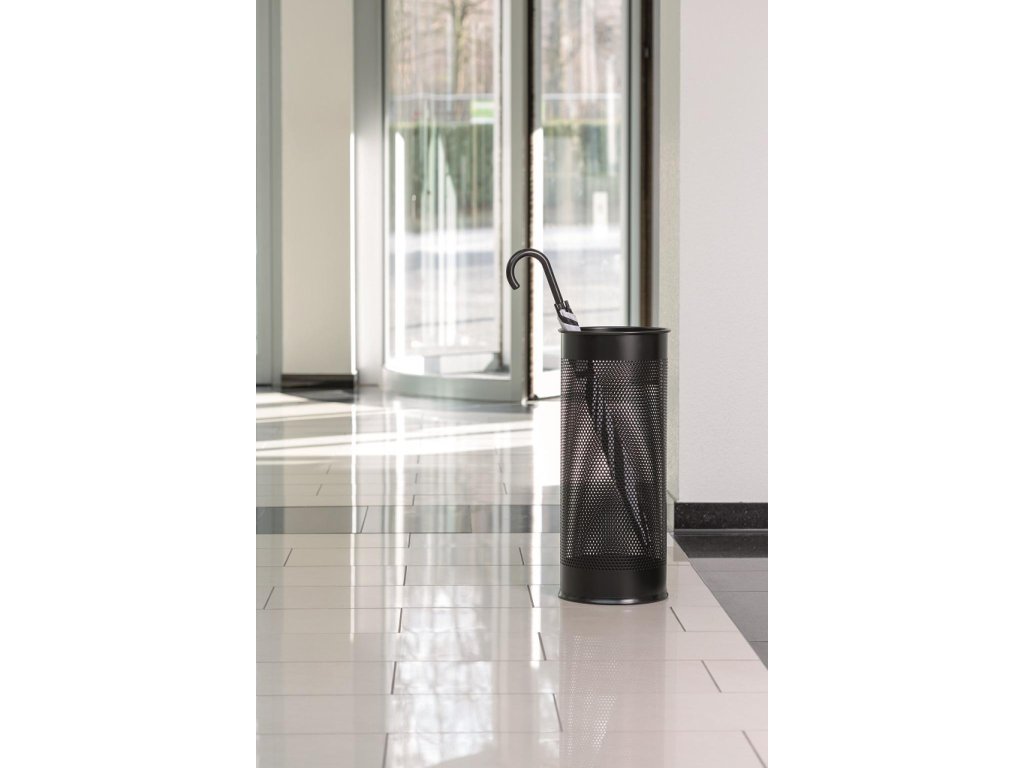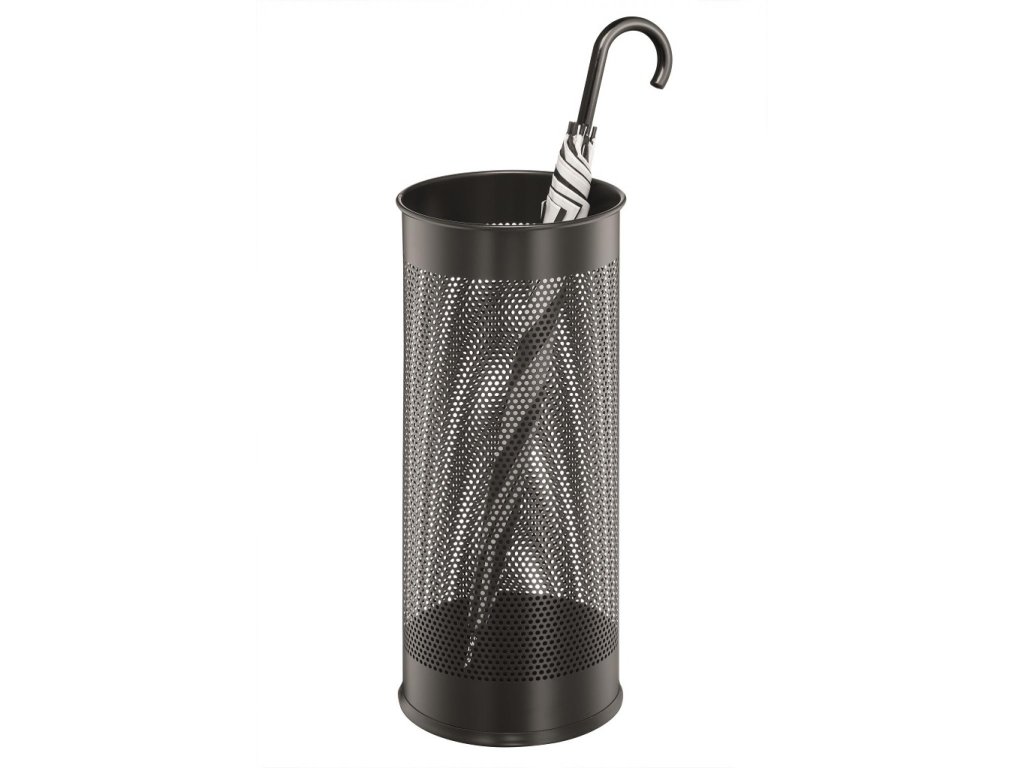 Štýlový stojan na dáždniky vysokej kvality s dekoratívnou perforáciou vyrobený z ocele. Ideálny do vstupných priestorov, domácností a kancelárií. Objem 28,5 l, výška 620 mm, priemer 260 mm.