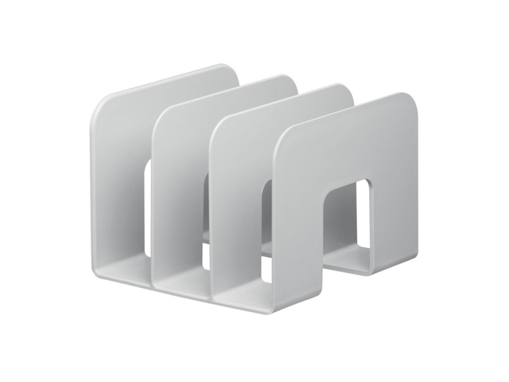 Trojpriehradkový stojan na katalógy pre flexibilné použitie. Vyrobený z recyklovaných plastov v kvalite Blue Angel. Priehradky široké 65 mm. Jednoduché zasúvanie a vyberanie. Vhodný pre časopisy, brožúry, katalógy atď. Rozmery: 215 x 165 x 210 mm (Š x V x H). Farba sivá.