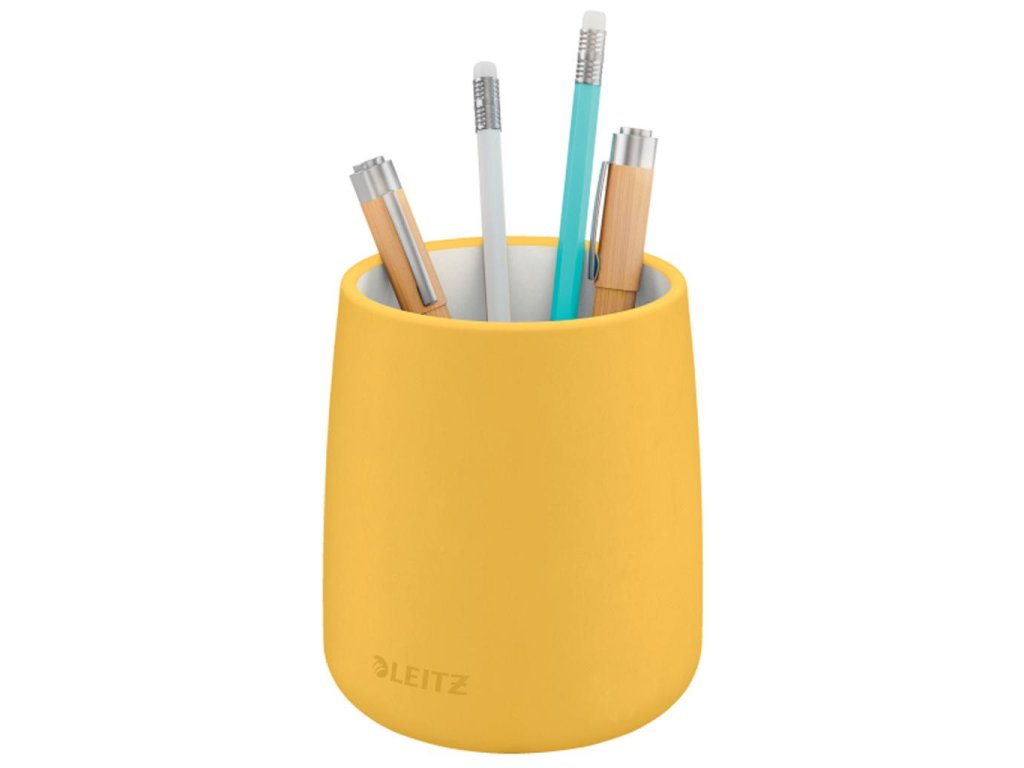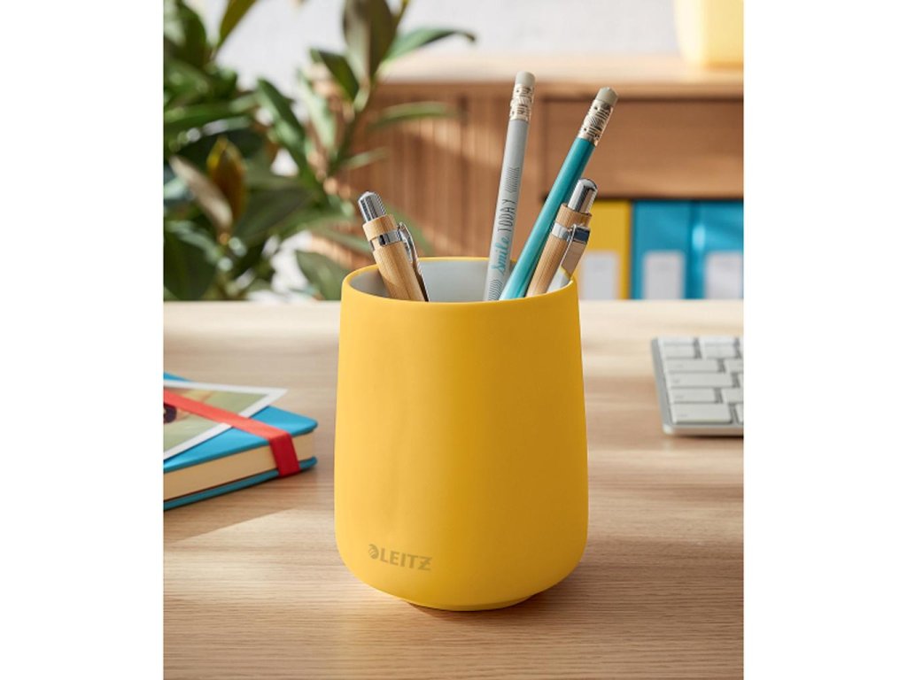 Značková kolekcia Leitz Cosy vám umožní cítiť sa ako doma, nech už vás pracovný deň zavedie kamkoľvek. Vďaka minimalistickému dizajnu a príjemným farbám môžete svojmu pracovnému priestoru pridať štýl a farbu. Tento kvalitný keramický téglik je ideálny do kancelárie aj domov, na pracovný stôl na odloženie písacích potrieb či pravítka, do kúpeľne napríklad na zubnú kefku a pastu. Výška 108 mm a priemer otvoru 85 mm sú dostatočné na ukladanie a manipuláciu, aj malé veci vám pomôžu zostať dobre naladení celý deň. Moderný keramický téglik na ceruzky. Výška 108 mm a priemer horného otvoru 85 mm. Lákavé matné farby s minimalistickým dizajnom. Farba žltá.