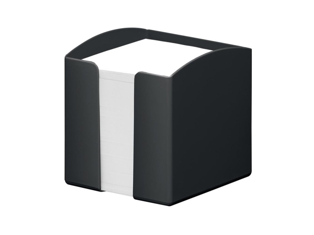 Stojan na poznámkový blok z recyklovaných plastov v kvalite Blue Angel. S 800 lístkami recyklovaného papiera v kvalite Blue Angel, veľkosť 93 x 93 mm. Rozmery: 100 x 105 x 100 mm (Š x V x H). Farba čierna.