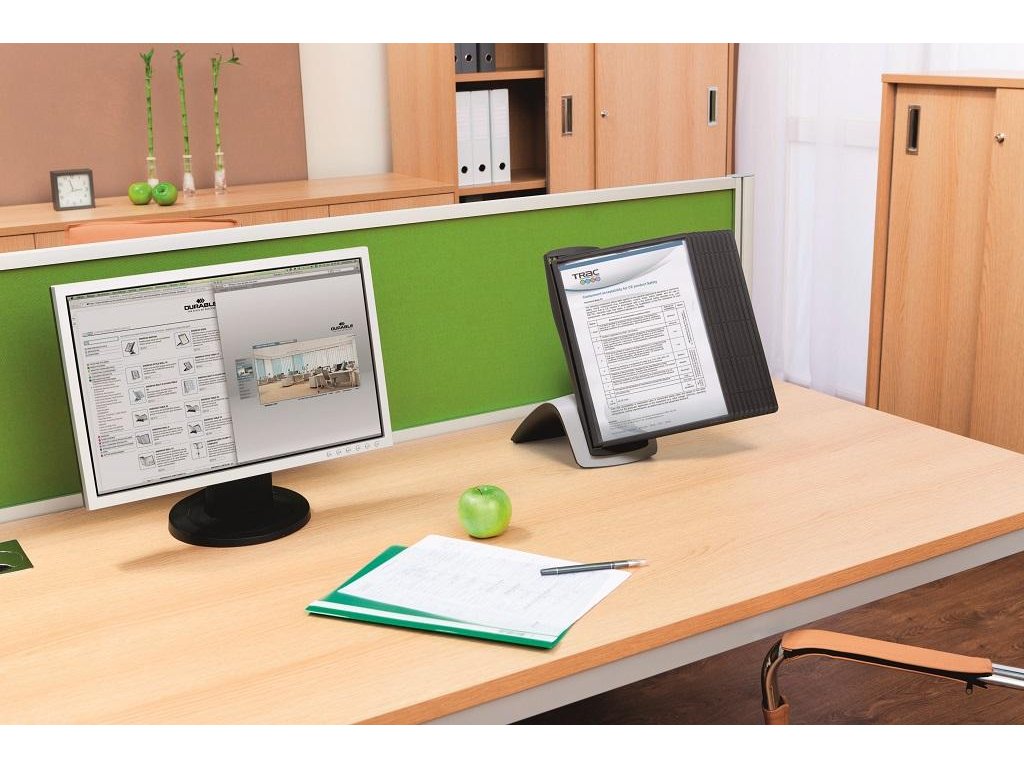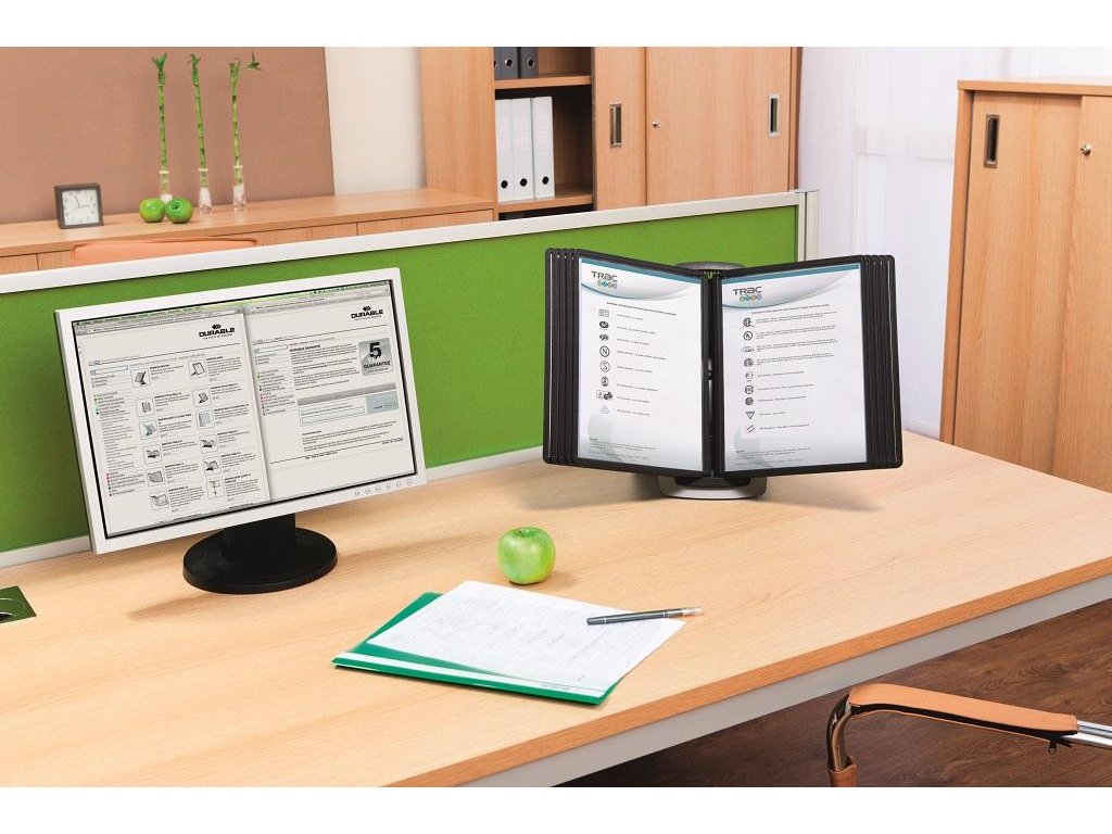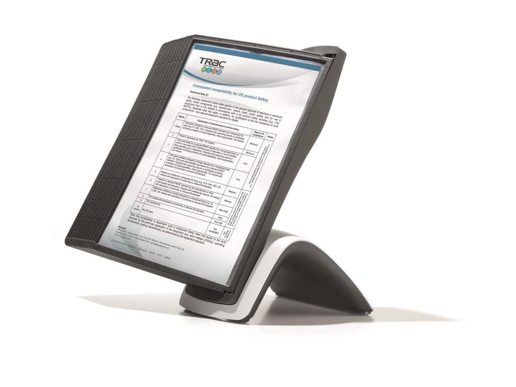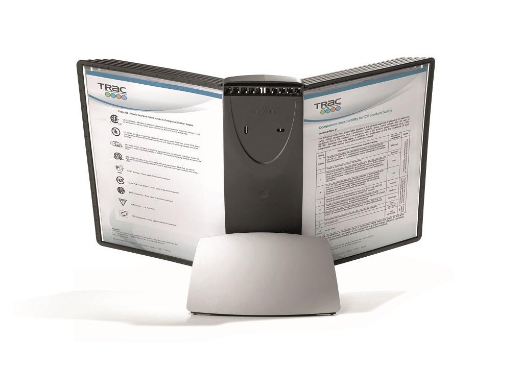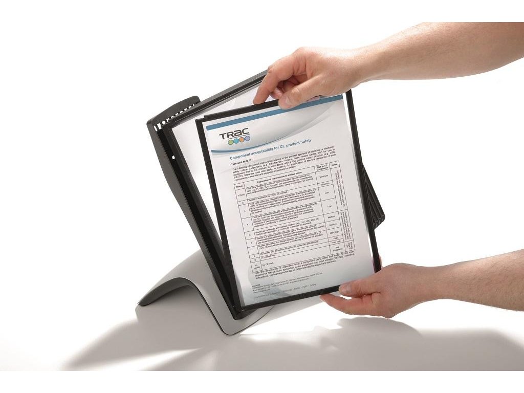 Štýlový stojan na stôl dodávaný s 10 displejovými panelmi SHERPA a indexami. Ideálny do kancelárií a na verejne prístupné miesta. Otvor na hornej strane panelu zabezpečuje jednoduché vkladanie a v prípade potreby rýchlu výmenu vložených materiálov. Farba panelov čierna.