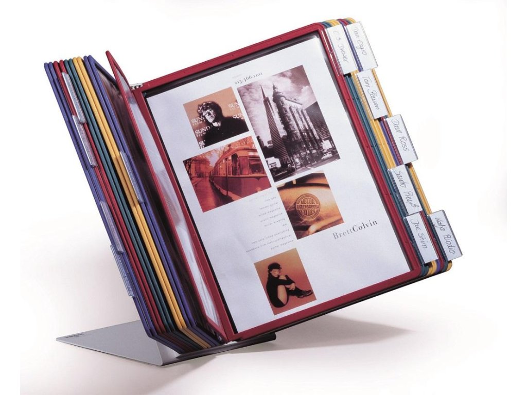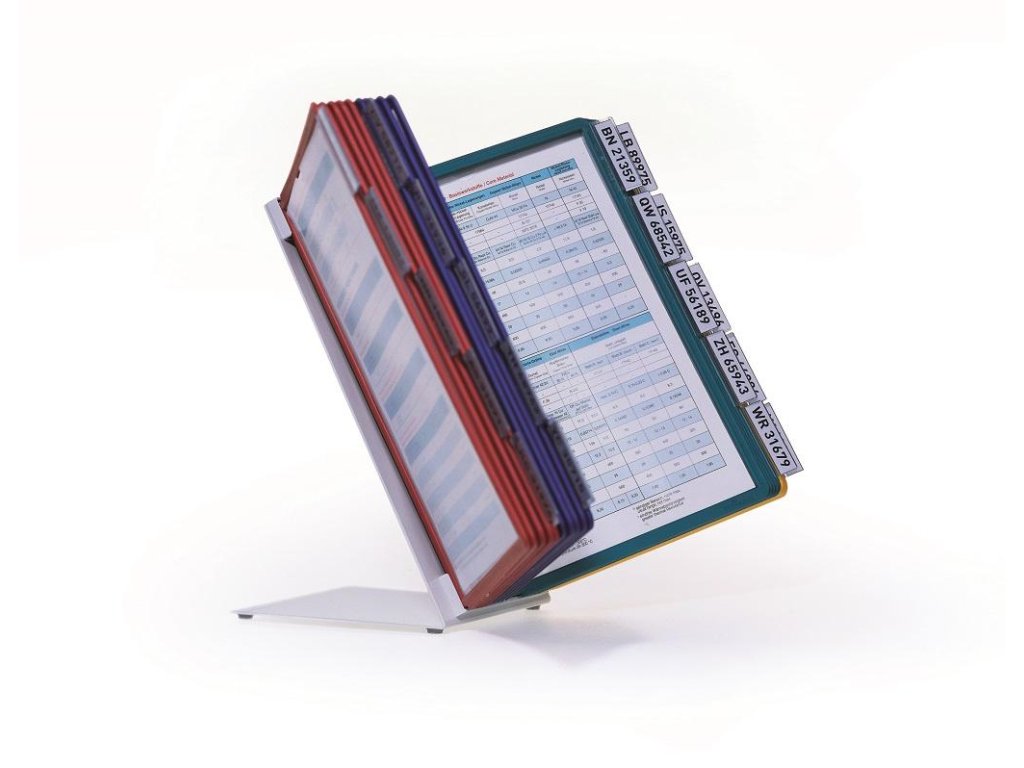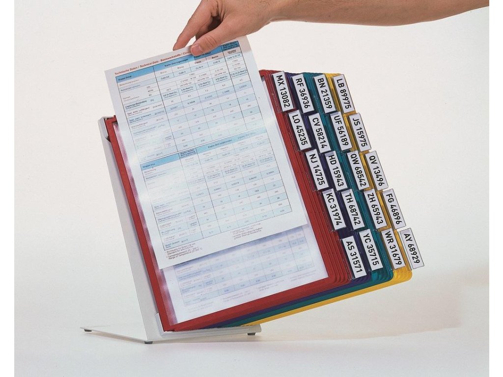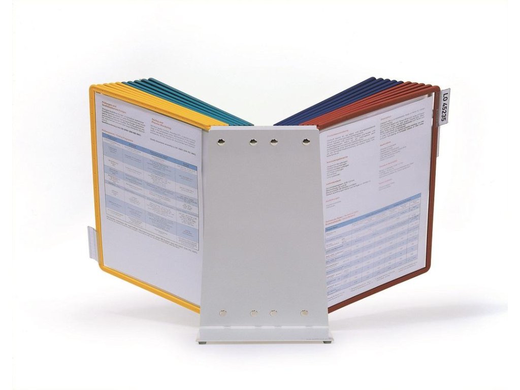 Extrémne pevný stojan na stôl v tvare L. Vyrobený z kovovej platne s plastovým poťahom odolným voči oderu. Ideálny na použitie v dielňach, skladoch, priemysle a kuchyniach. Dodávaný s 20 polypropylénovými panelmi SHERPA v mixe farieb (čierna, červená, žltá, zelená a tmavomodrá).
