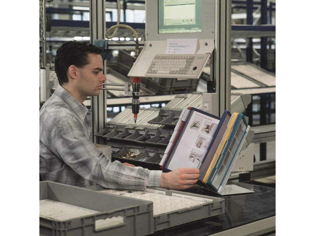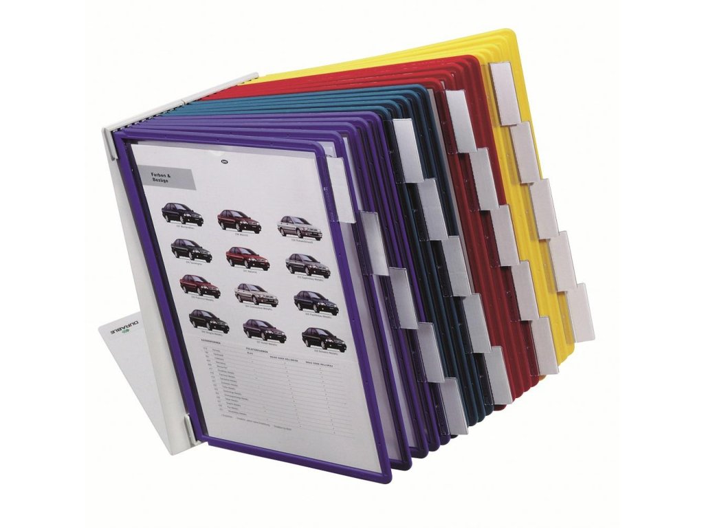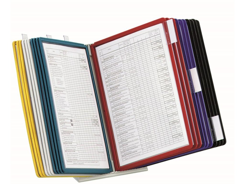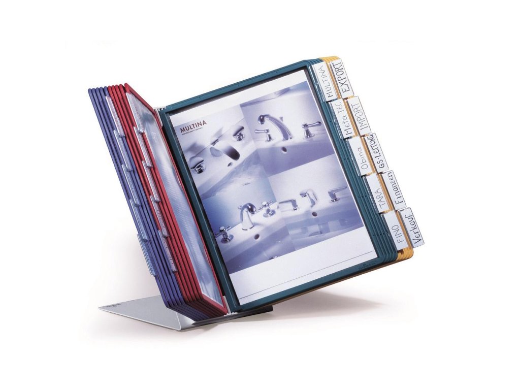 Extrémne pevný stojan na stôl v tvare L. Vyrobený z kovovej platne s plastovým poťahom odolným voči oderu. Ideálny na použitie v dielňach, skladoch, priemysle a kuchyniach. Dodávaný s 20 polypropylénovými panelmi SHERPA v mixe farieb (čierna, červená, žltá, zelená a tmavomodrá).