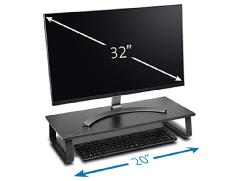 Extra široký podstavec pod monitor s pevnou oceľovou základňou zdvíha monitor do výšky optimálnej na zlepšenie držania tela, čo podporuje zdravie a zvyšuje produktivitu. Podstavec je nevyhnutným doplnkom pre všetky kancelárie, ktoré kladú dôraz na pohodu a zdravie zamestnancov. Maximálna nosnosť 20 kg, rozmery 60 × 26 × 12 cm (Š×H×V). Farba čierna.