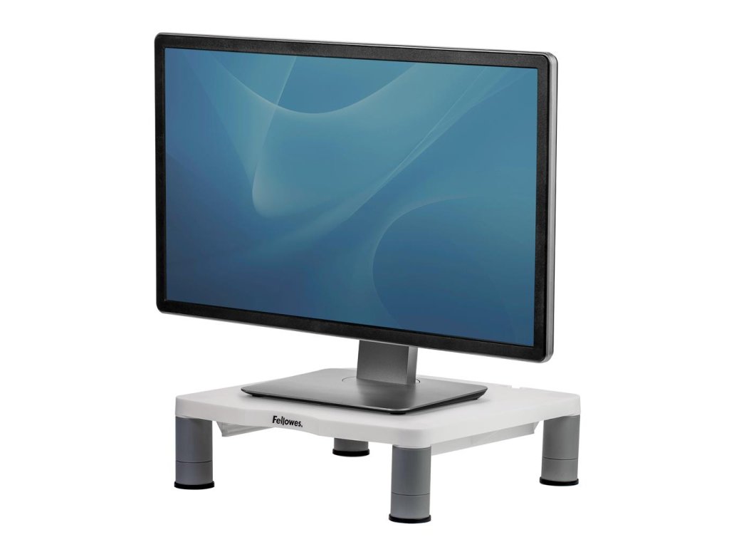 Model nastaviteľný v troch výškových stupňoch, vhodný pre 13 - 15 monitory. Rozmery 335 × 343 × 51 - 102 mm. Farba platinová.