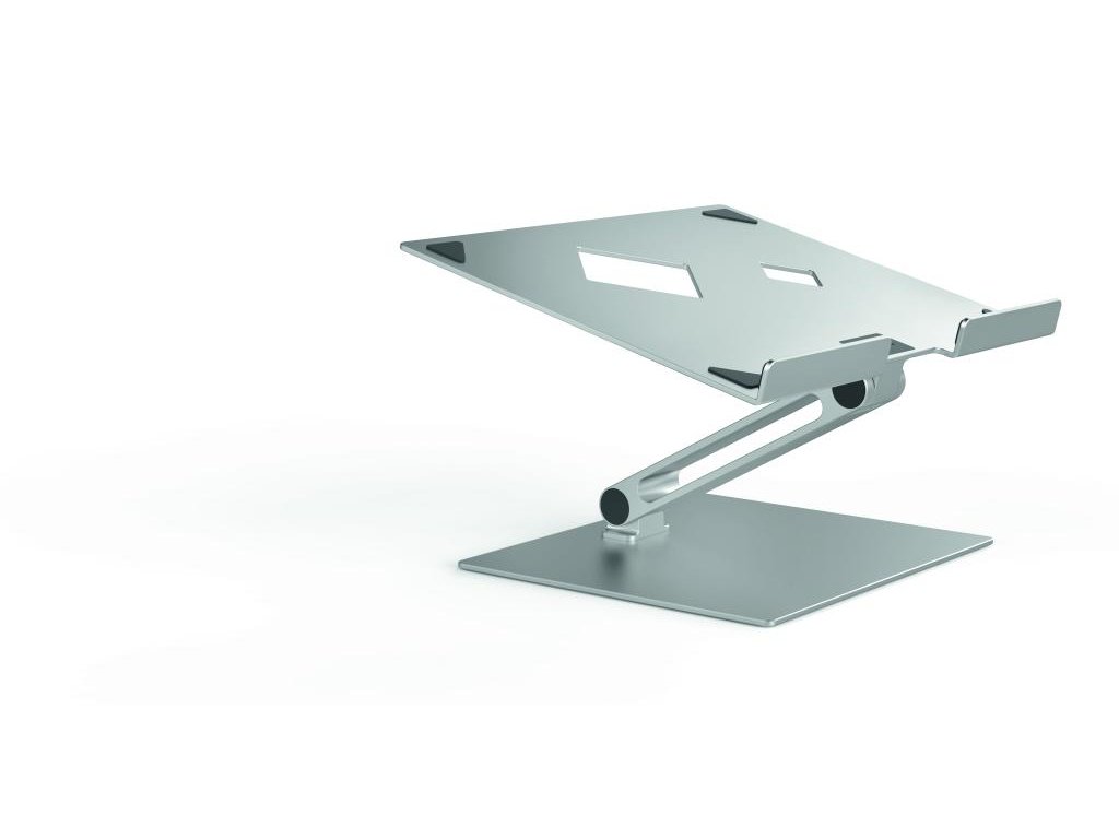 Univerzálny nastaviteľný stojan na stôl pre notebooky a tablety od 10” do 17”. Uľahčuje prácu vďaka ergonomickej a flexibilnej nastaviteľnosti výšky a uhla sklonu. Umožňuje používanie notebookov ako stolových monitorov (v kombinácii s externou klávesnicou a myšou). Vysoko stabilný pre bezpečnú prácu. Protišmykový gumený povrch chráni zariadenie pred poškriabaním. Mimoriadne robustný.