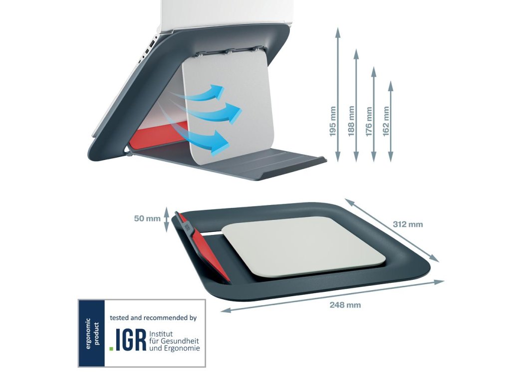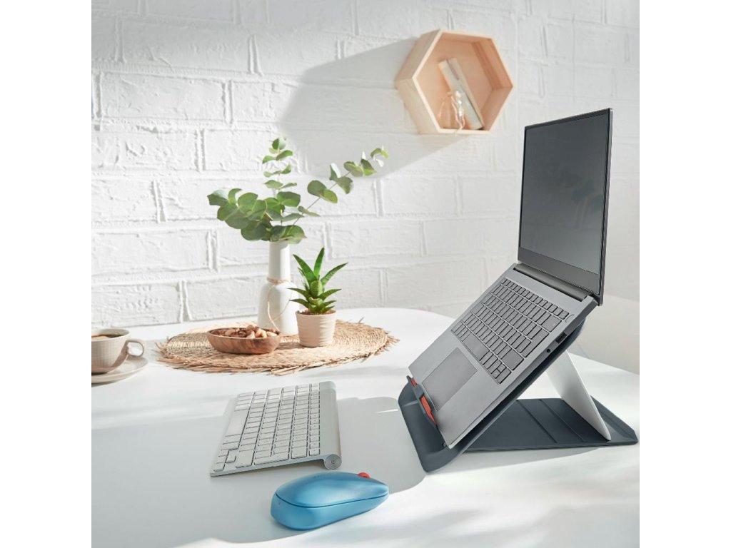 Ergonomicky navrhnutý stojan na notebook pre maximálne pohodlie pri práci. Ideálny na prácu posediačky alebo postojačky pri výškovo nastaviteľnom stole, čo ešte viac zlepšuje celkové zdravie a pohodu Nastavte výšku tak, aby bola obrazovka notebooku v ideálnej pozícii na sledovanie Stojan na notebook udržiava batériu a ostatné komponenty v perfektnom stave vďaka chladeniu prúdením vzduchu Rýchle a jednoduché individuálne prispôsobenie stojana na notebook, štyri rôzne výšky na výber Vďaka kompaktnému dizajnu a podstavcu je ideálnym doplnkom každého pracovného stola Keď ho nepoužívate, jednoducho ho zložíte Gumové prvky a integrovaný držiak poskytujú bezpečné a stabilné uchytenie vášho notebooku, aby zostal pevne na svojom mieste Vhodné pre notebooky od 13` do 17`. Tento výrobok by sa mal používať s externou klávesnicou a myšou (predáva sa samostatne) Kolekcia Leitz Cosy Ergo spája štýl s prvotriednou kvalitou na vytvorenie zdravého a aktívneho pracovného prostredia. Farba sivá.