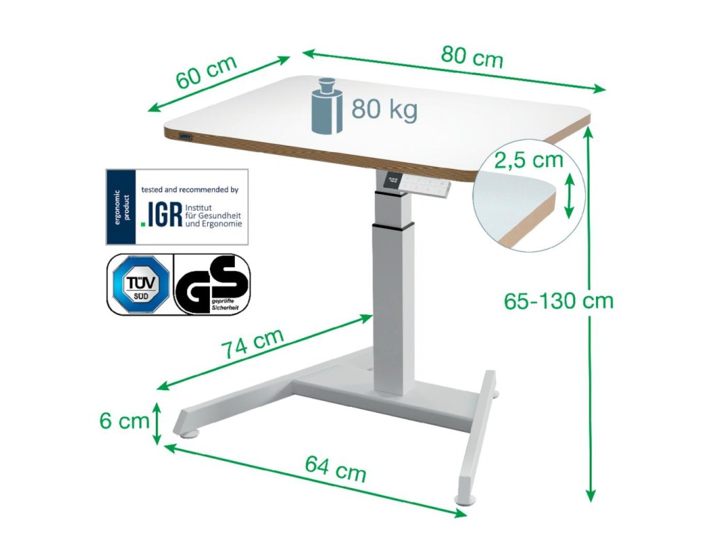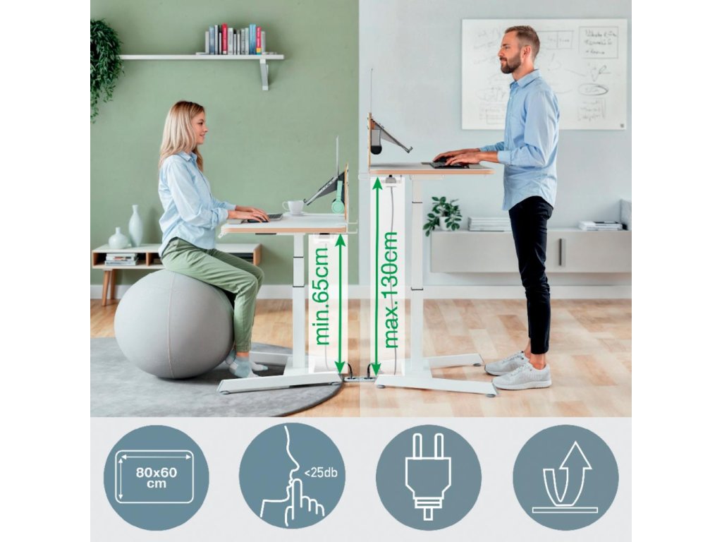 Elektrický stôl na sedenie/státie s kompaktnou stolnou doskou (80 x 60 cm)