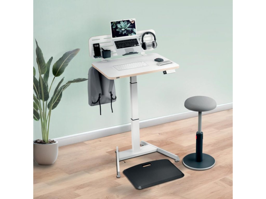 Stôl na sedenie/státie elektrický s kompaktnou doskou, biely