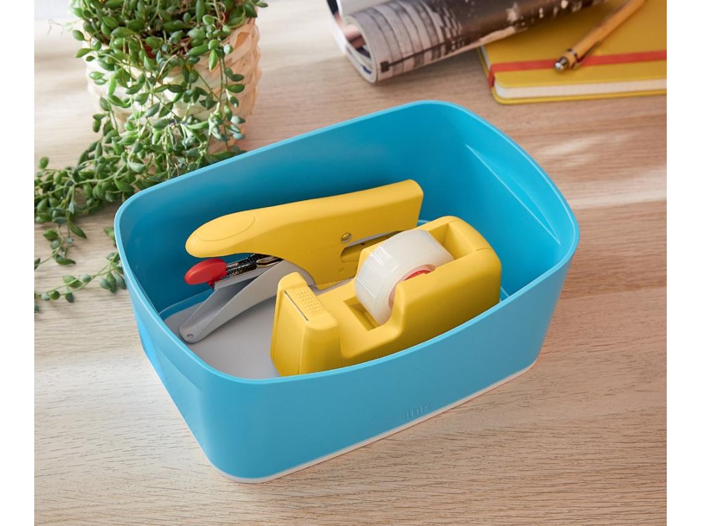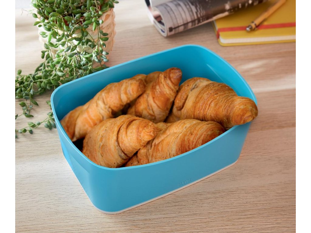 Úložný box je ideálny na uloženie všetkých dôležitých drobností, ako sú napríklad káble, zošívačka, domáce náradie, čistiace prostriedky. MyBox má certifikáciu Food safe, je vhodný na prenos teplých aj studených jedál, na uloženie potravín - čaju, kávy, mlieka, cukru - vo firemnej kuchynke či na recepcii, doma na ovocie a pod. Tento box prvotriednej kvality je perfektným doplnkom vášho domova alebo kancelárie, pomôže s organizáciou dôležitých drobností a uľahčí a spríjemní vám prácu. Materiál plast. Rozmery 246 x 98 x 160 mm. Farba modrá.