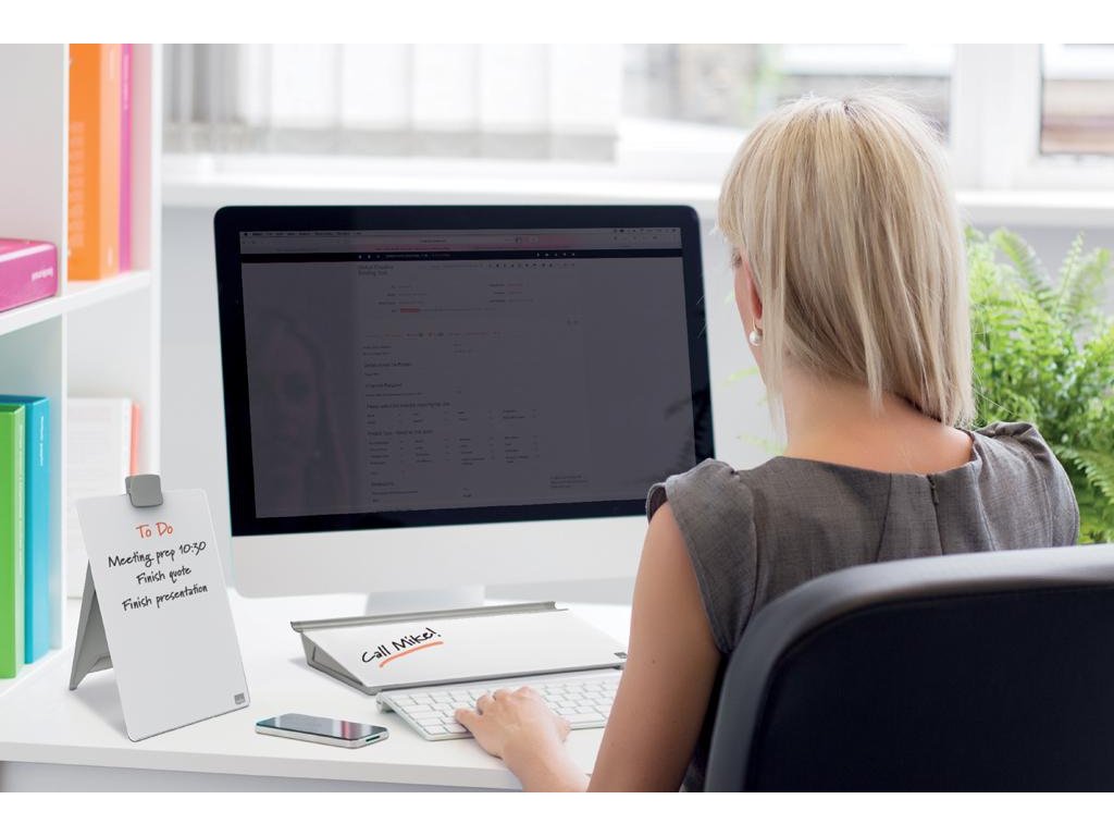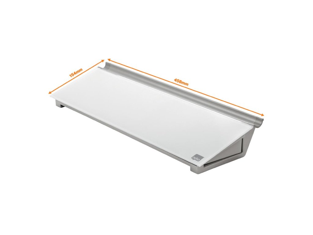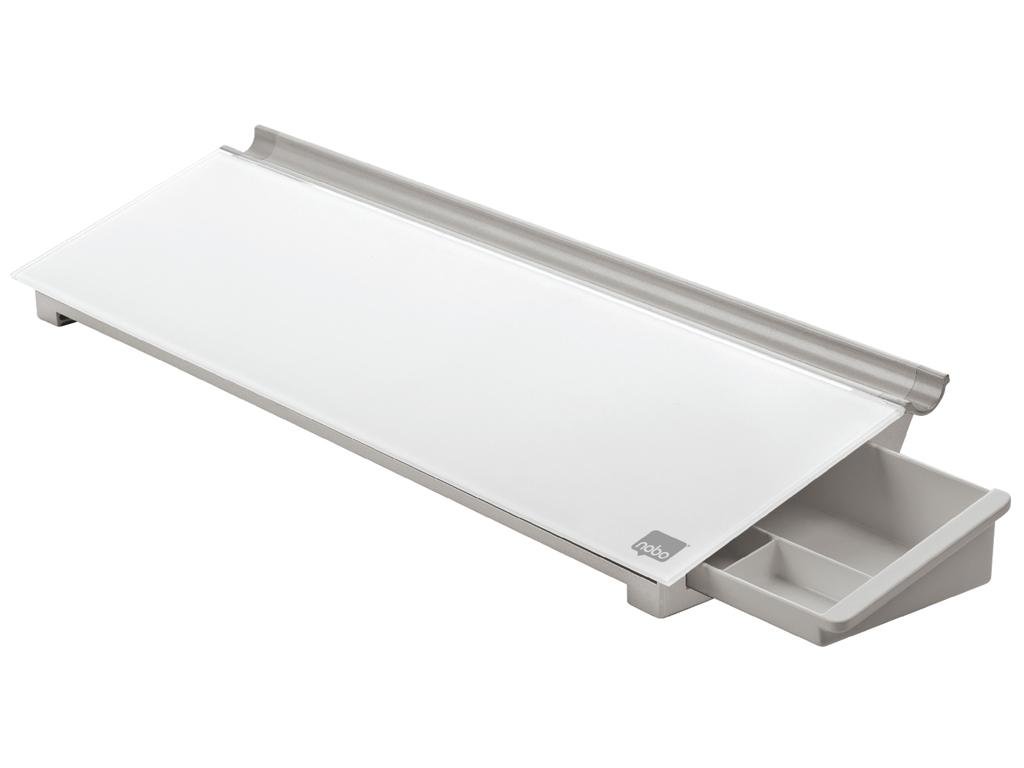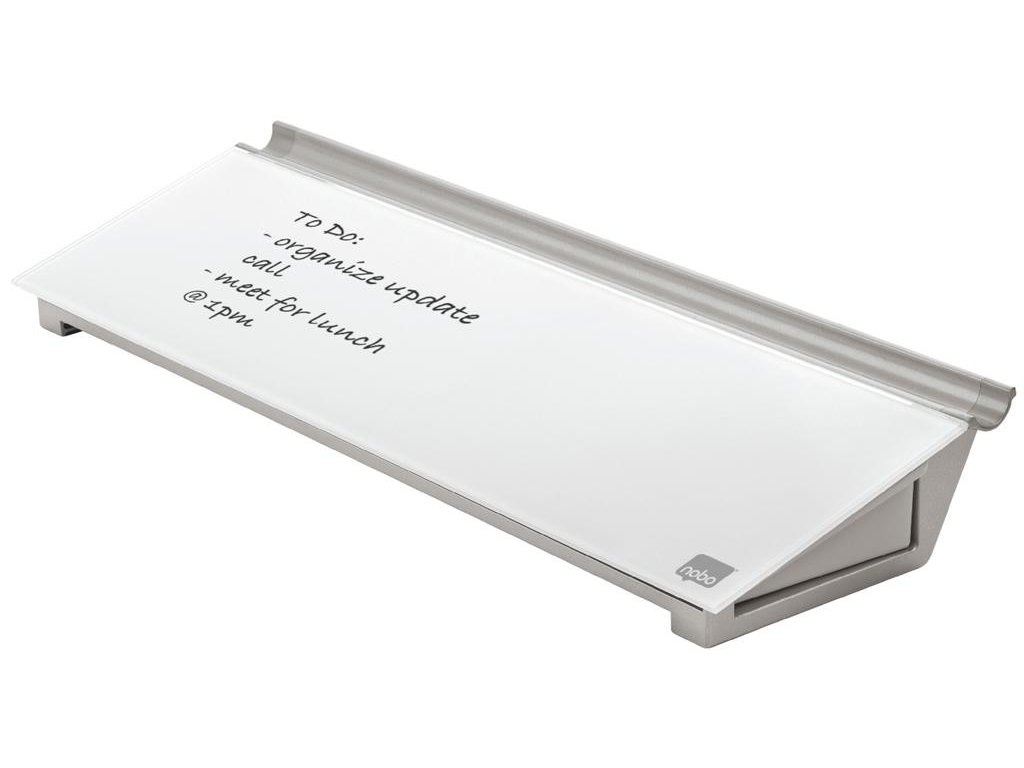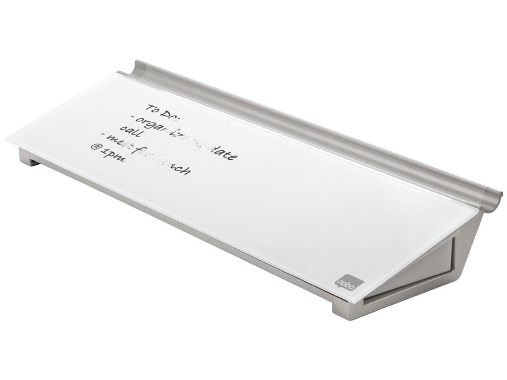 Sklenená stolová podložka je unikátny doplnok na stôl na písanie poznámok a odkazov. Bezrámčekový dizajn a sklenený povrch tabule ponúka najvyššiu odolnosť proti šmuhám od atramentu a škrabancom. Písacia plocha je vždy poruke a písanie poznámok je tak veľmi pohodlné. Výrobok sa perfektne hodí do priestoru za klávesnicou. Skrytý úložný priestor vnútri vám pomôže si udržať čistý pracovný stôl. Dodávané s minipopisovačom Nobo s hubkou na viečku.