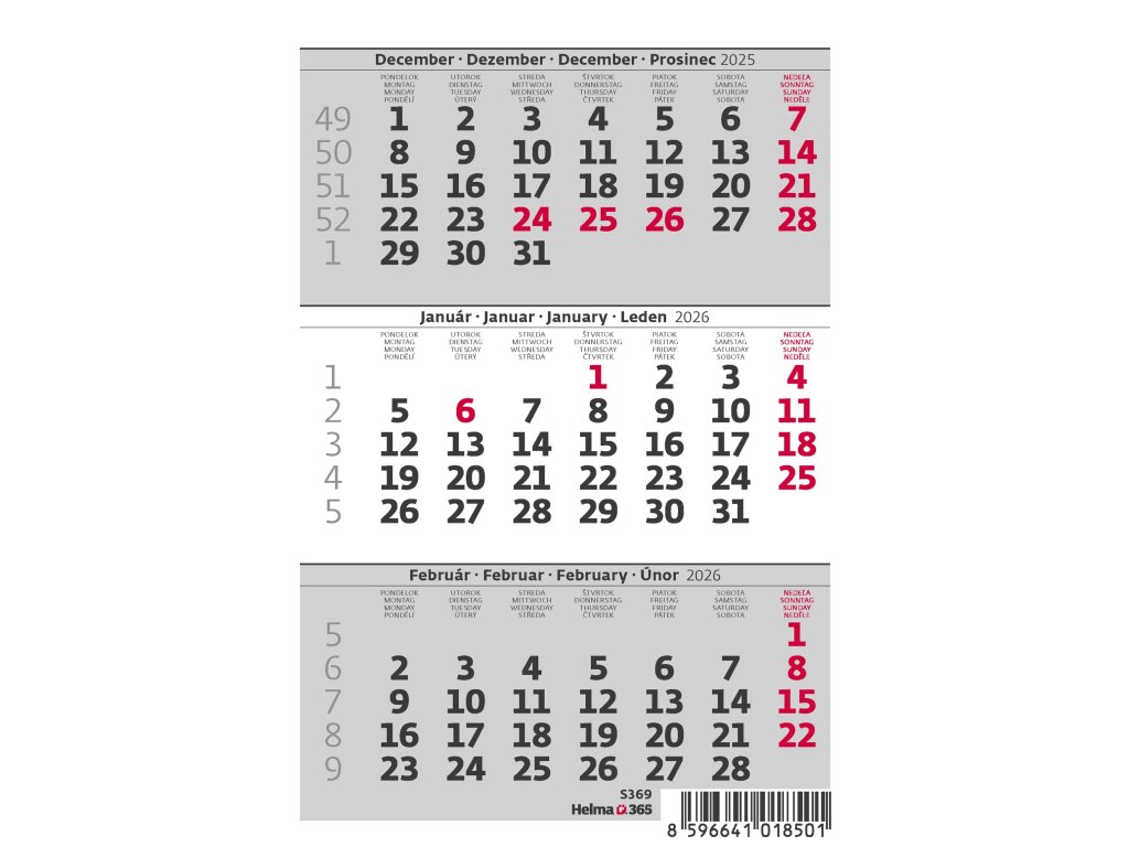 Kalendárium: české/slovenské 3-mesačné kalendárium