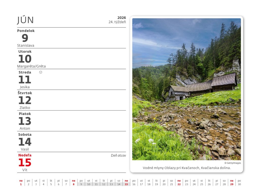 Stolový kalendár riadkový 17,1x13,9 cm - MiniMax Čarovné Slovensko 2026