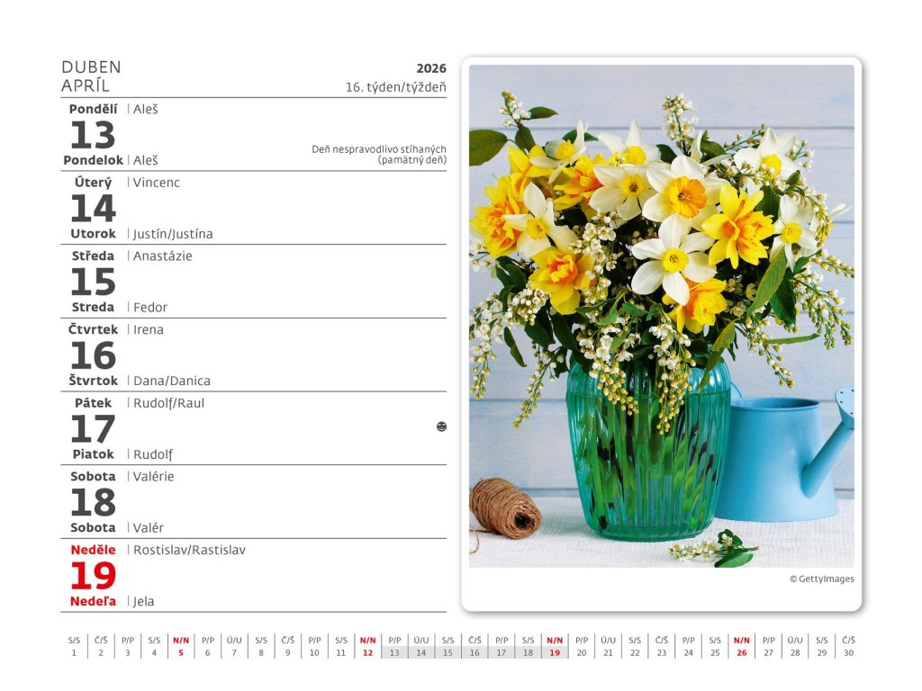 Stolový kalendár riadkový 17,1x13,9 cm - MiniMax Kvetiny 2026