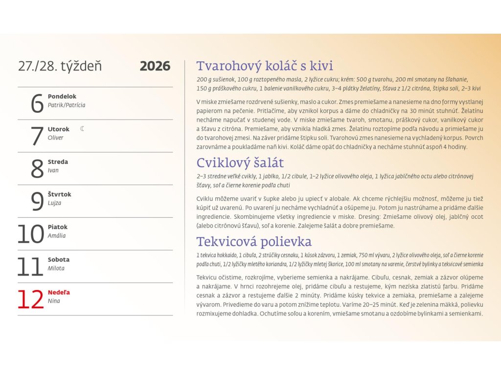 Formát kalendára: 22,6 x 13,9 cm