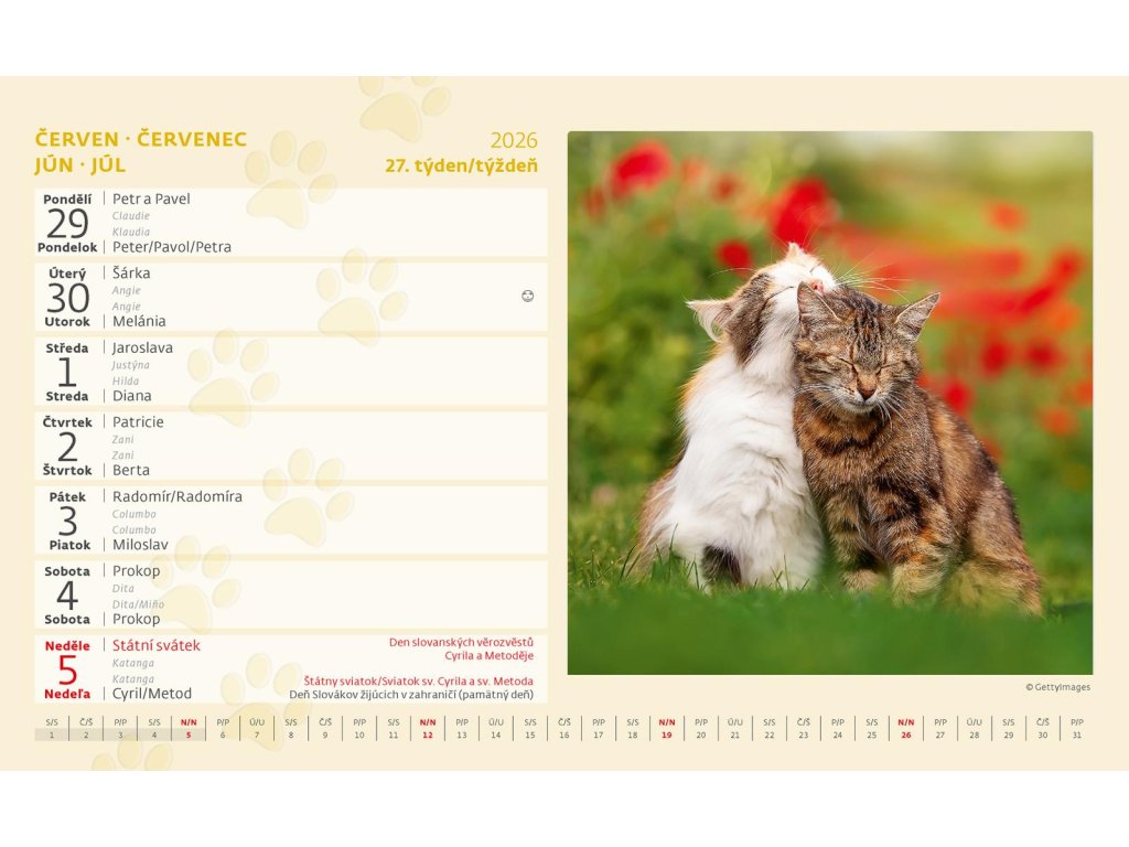Stolový kalendár riadkový 22,6x13,9 cm - Kočky/Mačky 2026