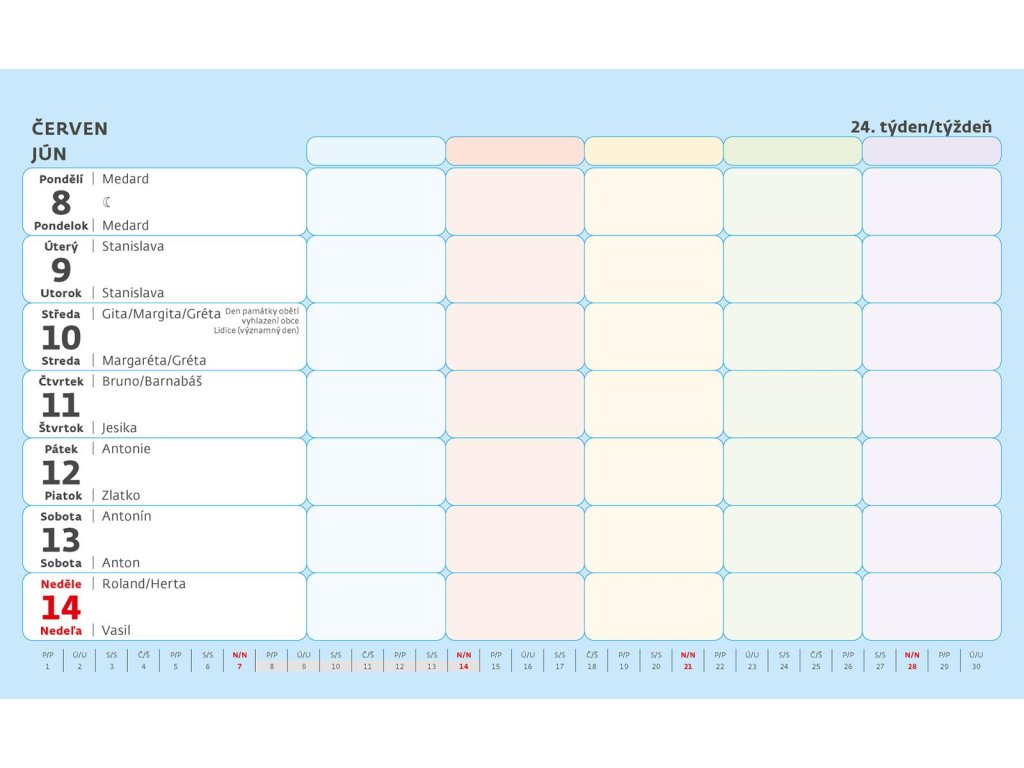 Stolový kalendár riadkový 22,6x13,9 cm - Týždenný rodinný plánovací 2026
