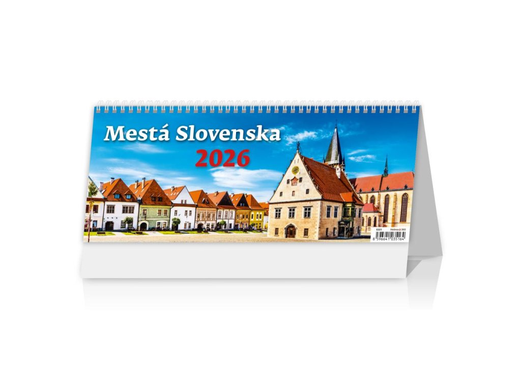 Stolový kalendár riadkový 32,1x13,4 cm - Mestá Slovenska 2026