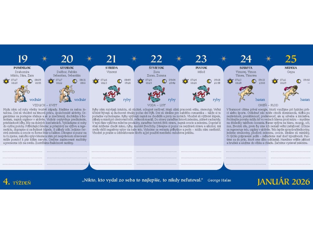 Stolový kalendár stĺpcový 29,7 x 13,8 cm - Lunárny 2026