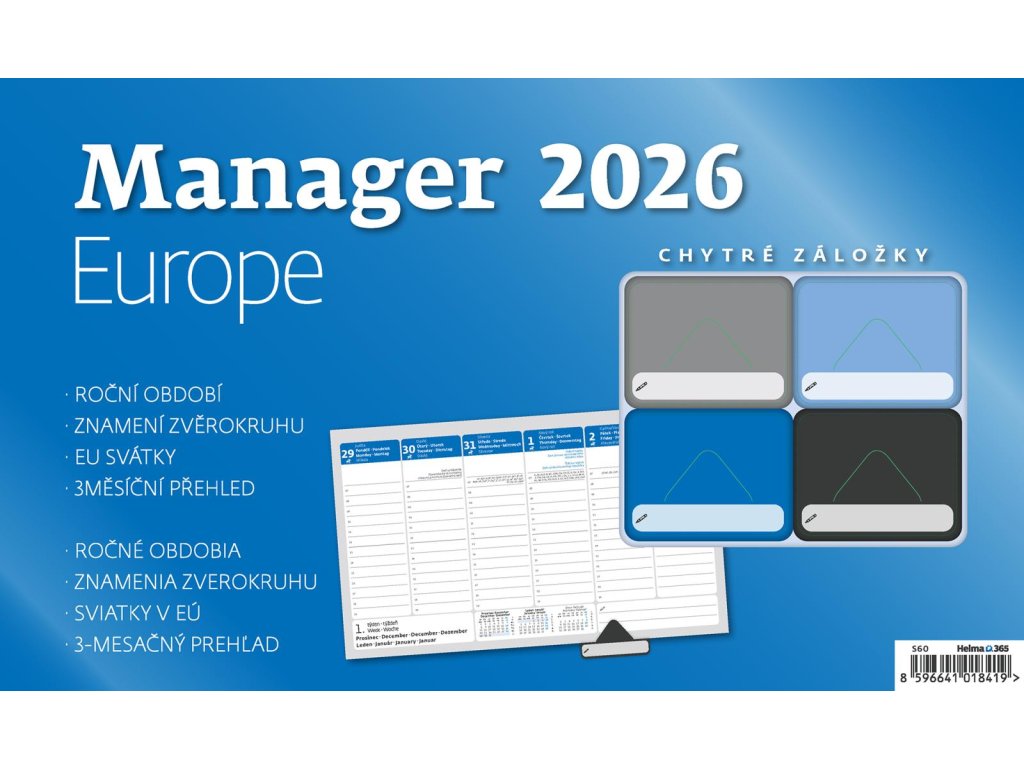 Stolový kalendár stĺpcový 30,1x18 cm - Manager Europe 2026